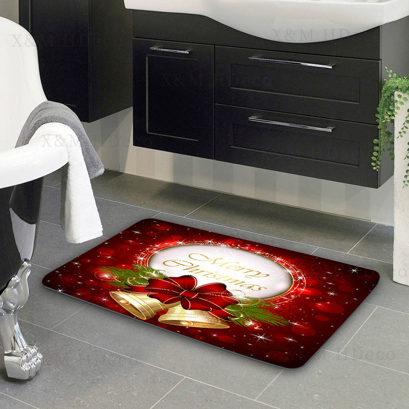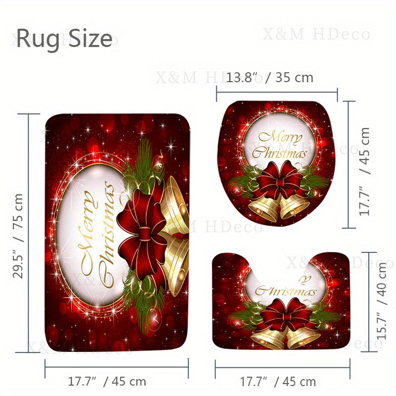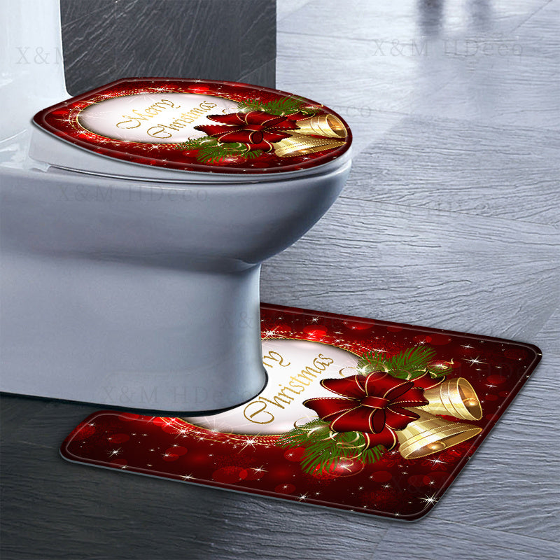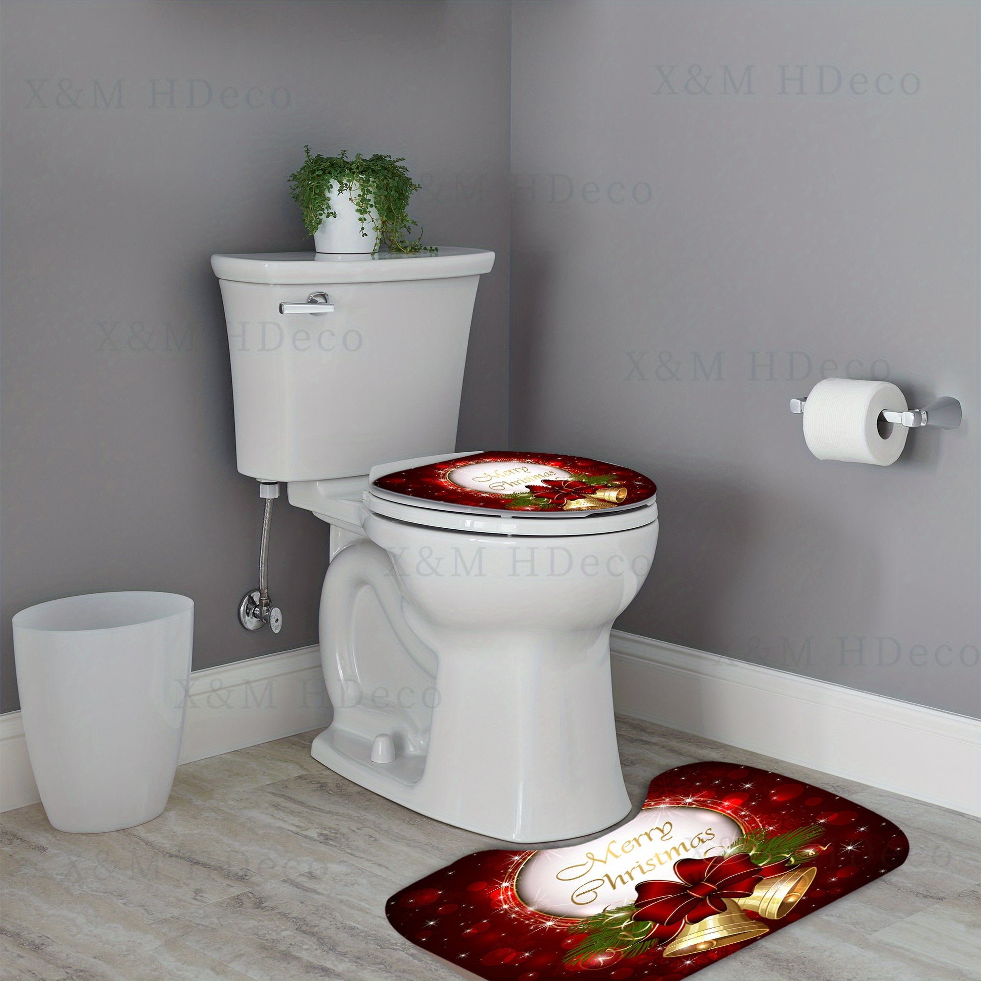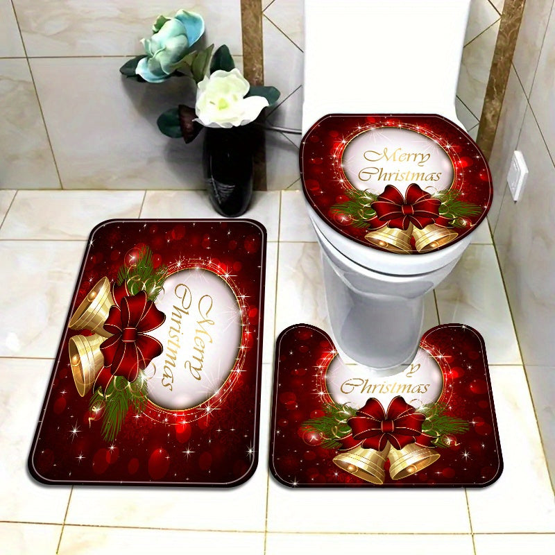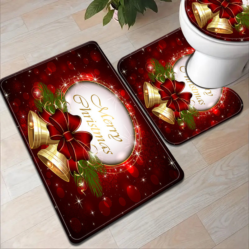 1/2/3pcs, Christmas Element Bell Bathroom Mat Set, Entrance Anti-slip Bathroom Floor Mat, Bathroom U-shaped Mat, Toilet Seat, Bathroom Decoration