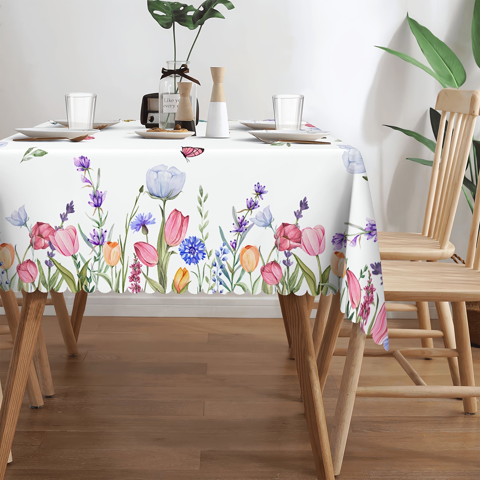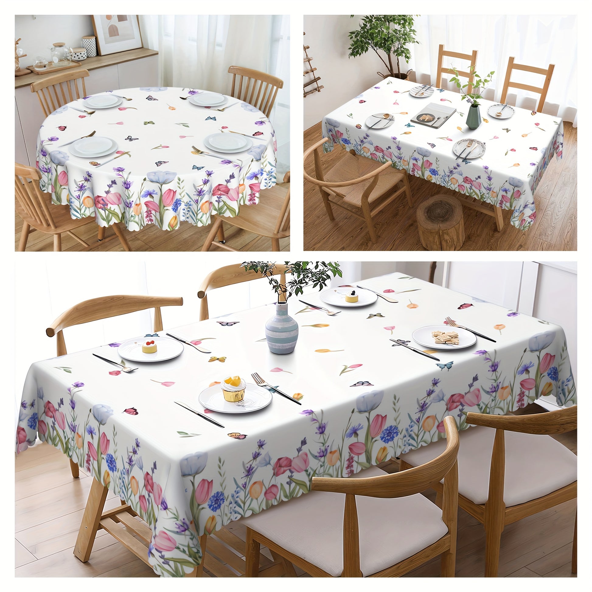 1pc Of Tulip Flower Butterfly Tablecloth, Spring Table Decoration, Edge Embossing Process, Printed Tablecloth, Anti-fouling, Waterproof, Wrinkle-free, Suitable For Daily Family Kitchen, Restaurant Terrace Indoor And Outdoor Use