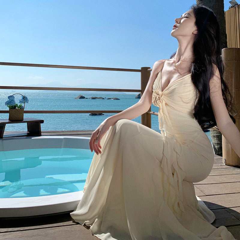 2025 Beautiful Royal Sister Suspender Dress Women's Summer Sexy Flowers Seaside Vacation Fishtail Hip Bag Dress
