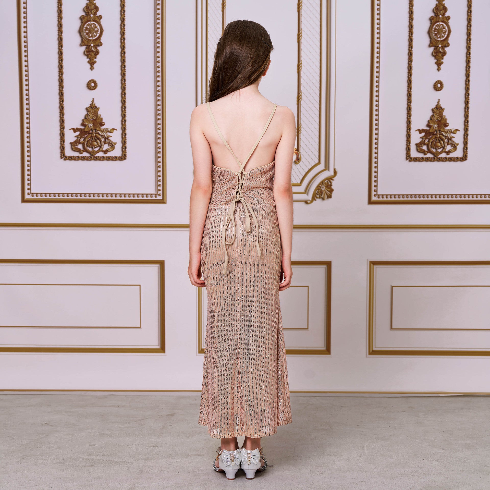 2025 catwalk princess dress model children's evening dress girls host small suspender sequins performance dress