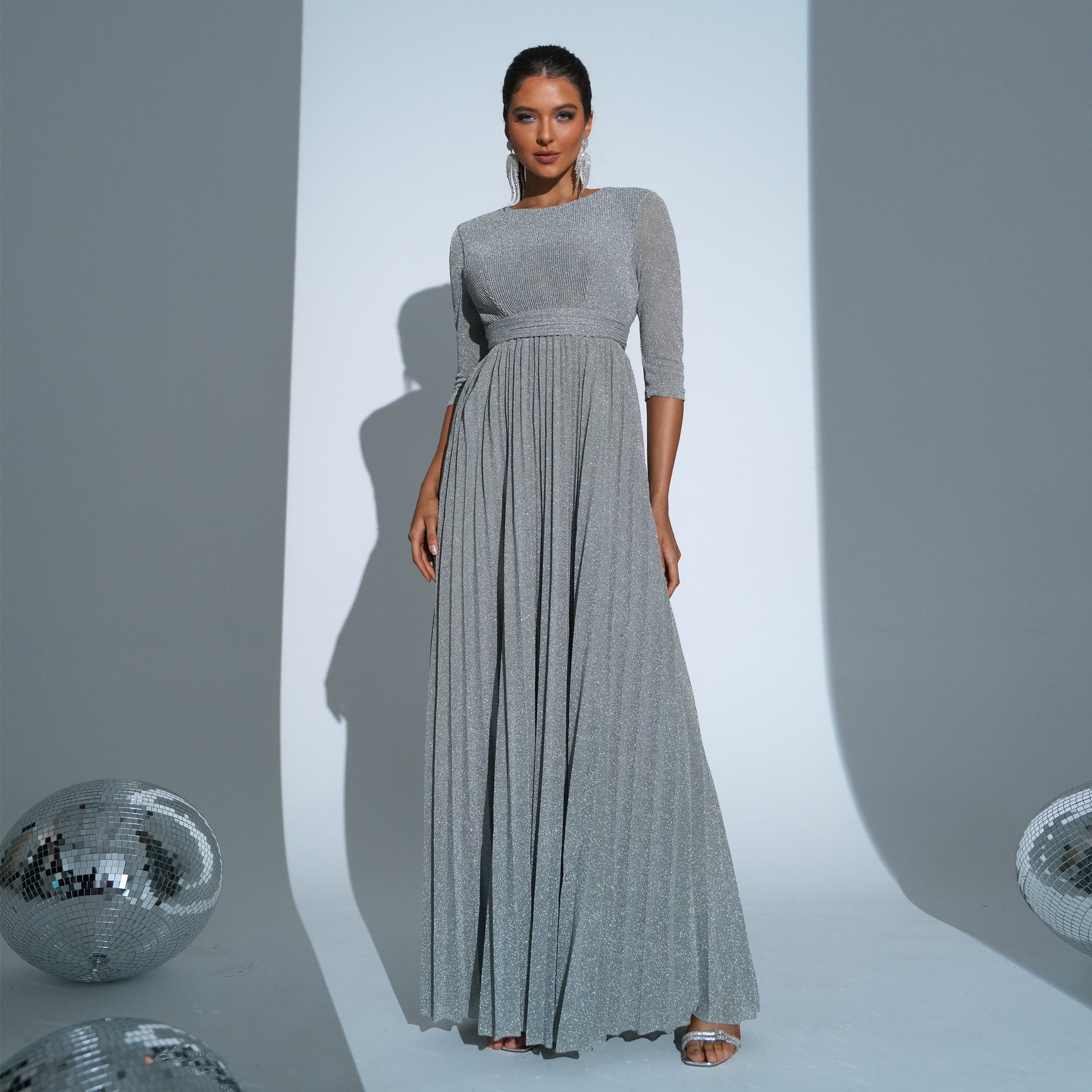 2025 five-quarter-sleeved temperament round neck long bohemian pendulum waist evening dress dress women's clothing