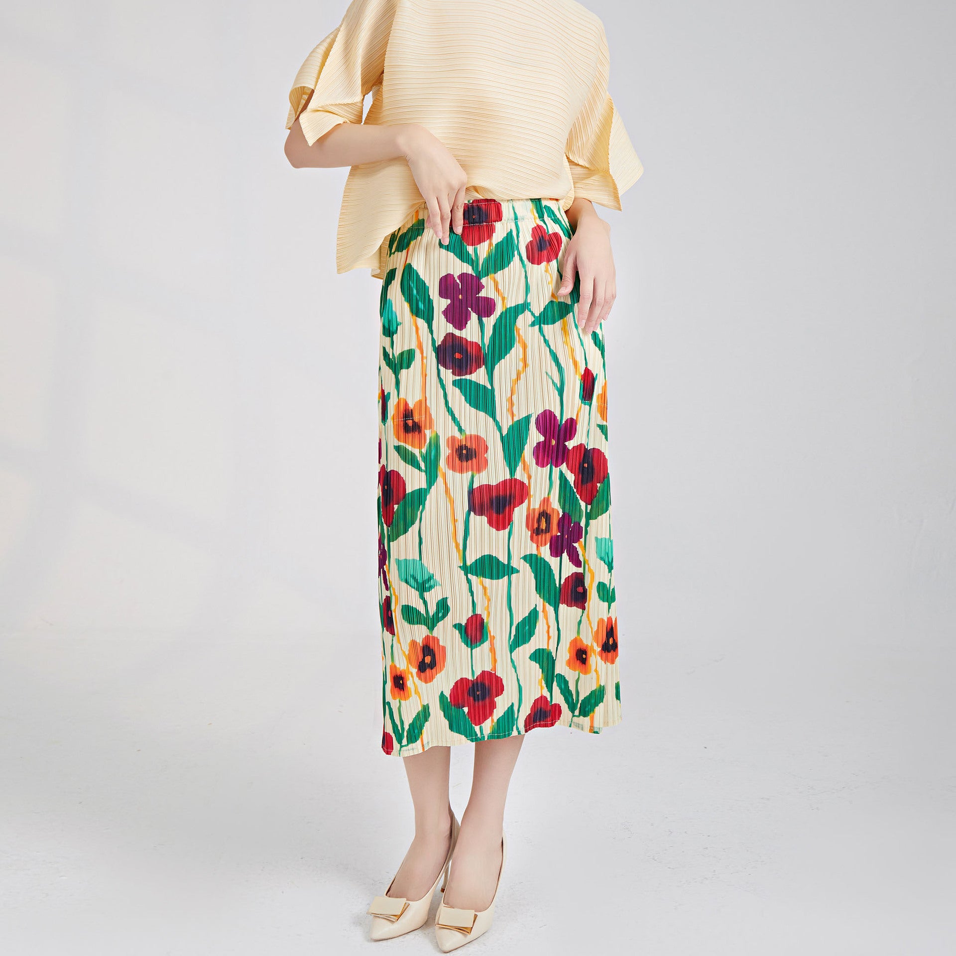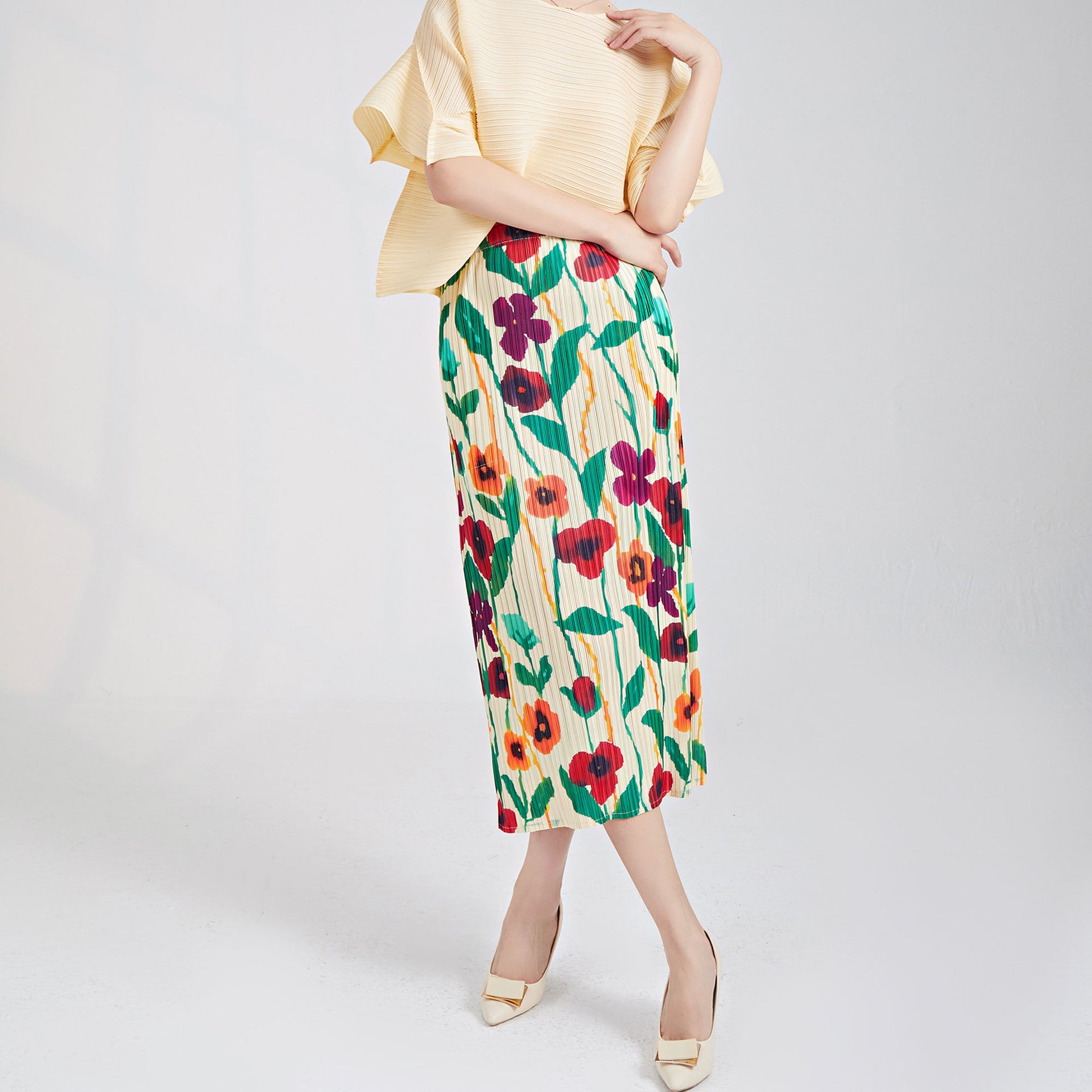2025 Folded skirt women's hip skirt summer new Xiaohongshu hot sale retro Mizhai straight skirt