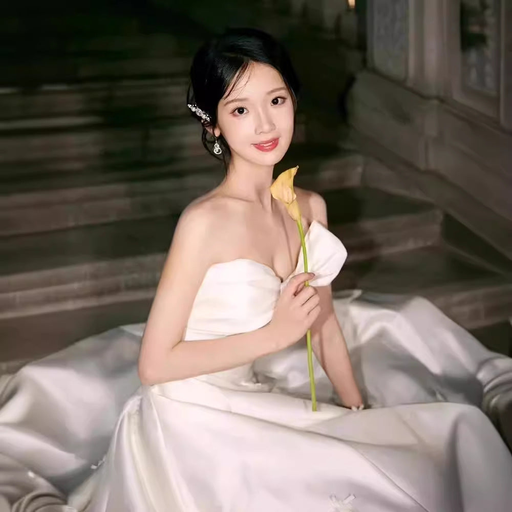 2025 light evening dress female niche light luxury high sense white bar mitzvah banquet host vocal art test tube top