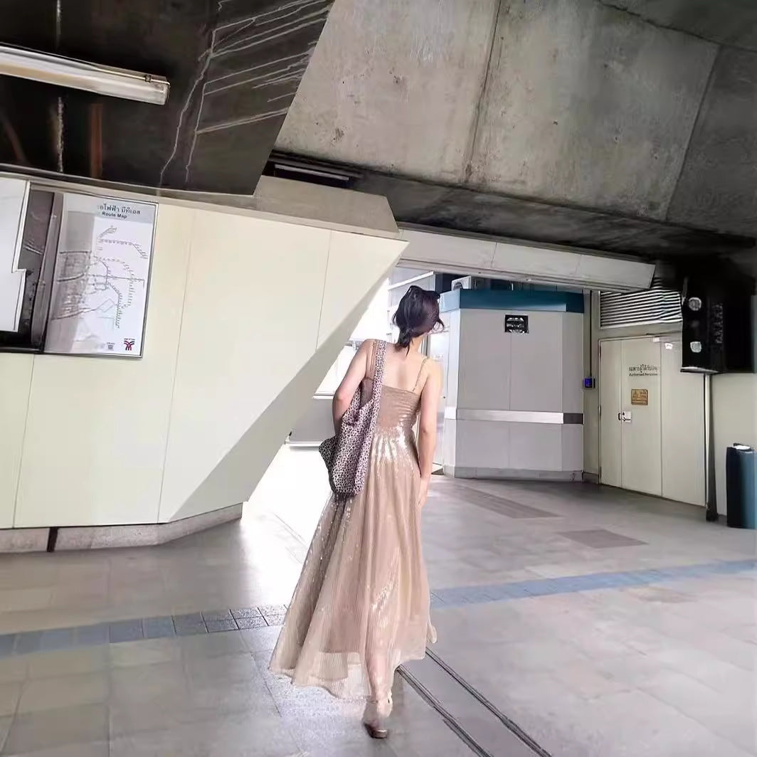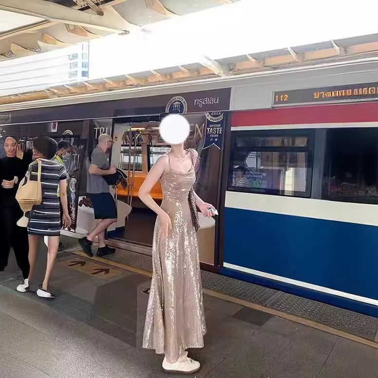 2025 popular new Popular style design sense niche sexy spice girl suspender long dress temperament sequin dress female ins tide