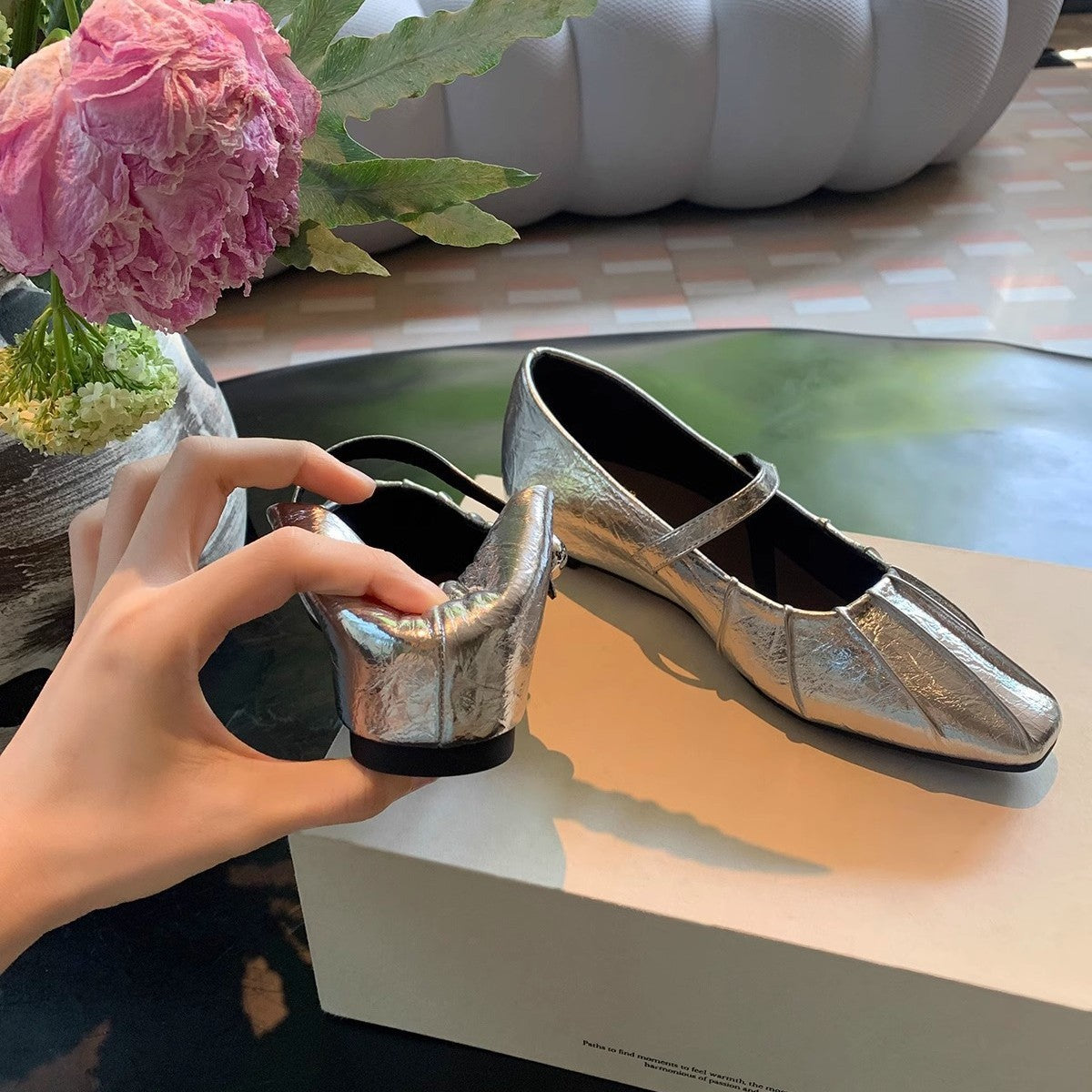 2025 Sheepskin version~ Grape mother has the same temperament, small square head folds, with Mary Jane bag head and half slippers for women's summer