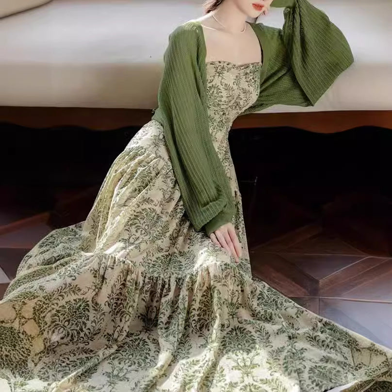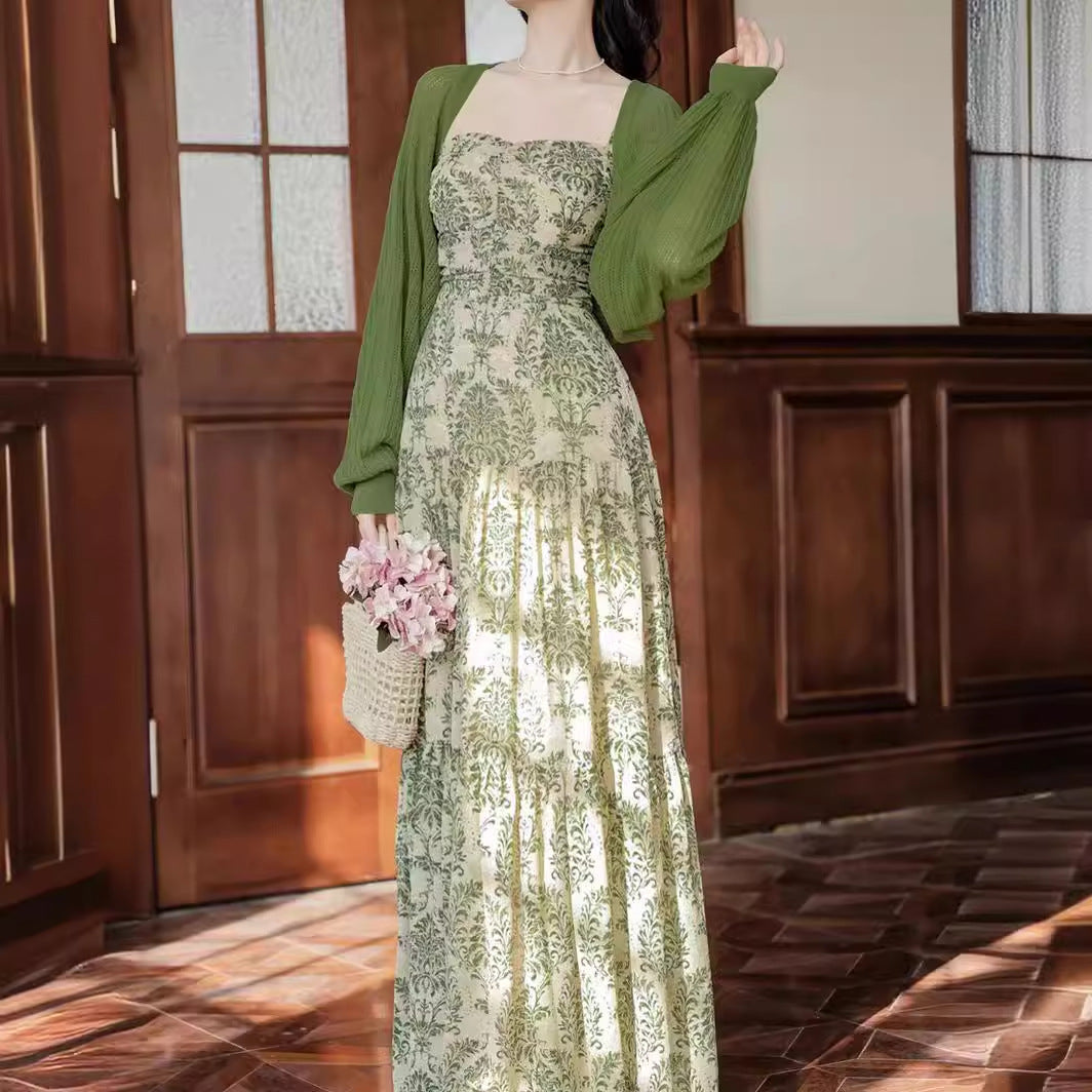 2025 Spot retro floral print chiffon suspender slim seaside vacation beach dress premium dress