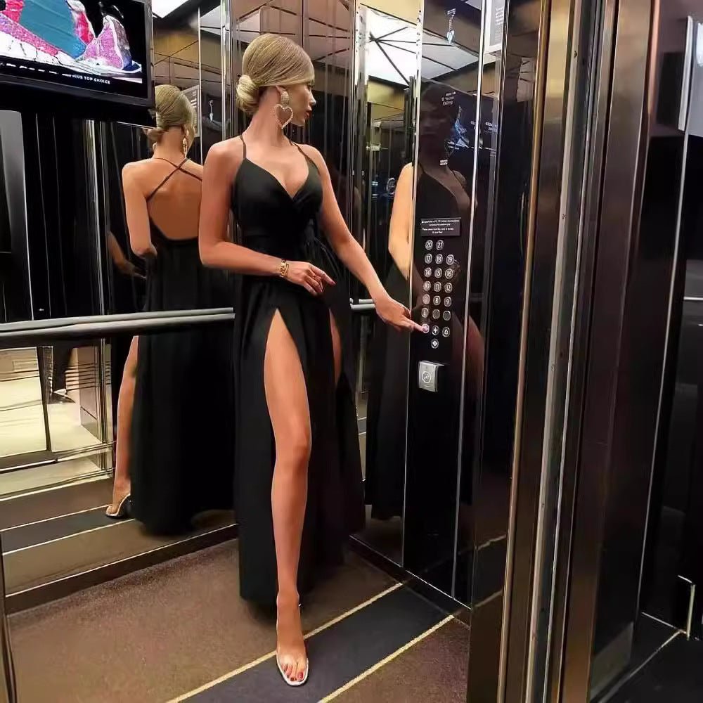 2025 spring and summer New Popular trade , 2025 sexy v-neck suspender split dress women's dress
