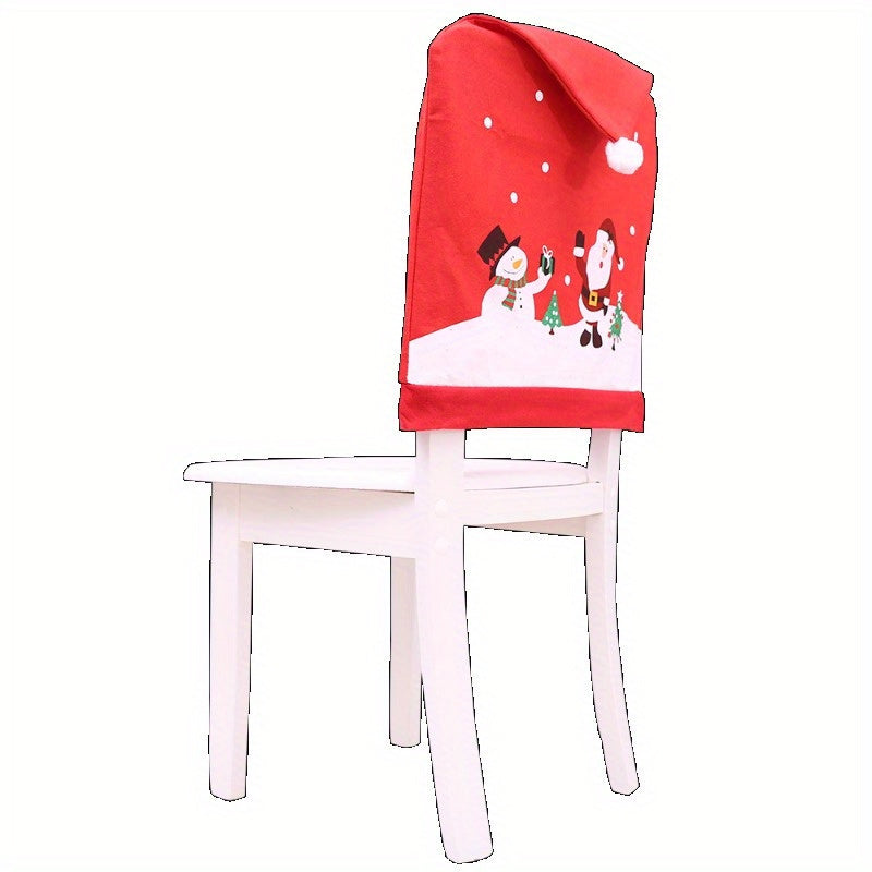 6 Sets of Red Non-Woven Christmas Chair Covers, Lovely Snowman Printed, Holiday Decorations for Home Team Atmosphere