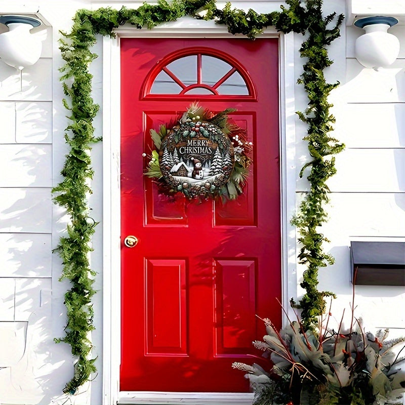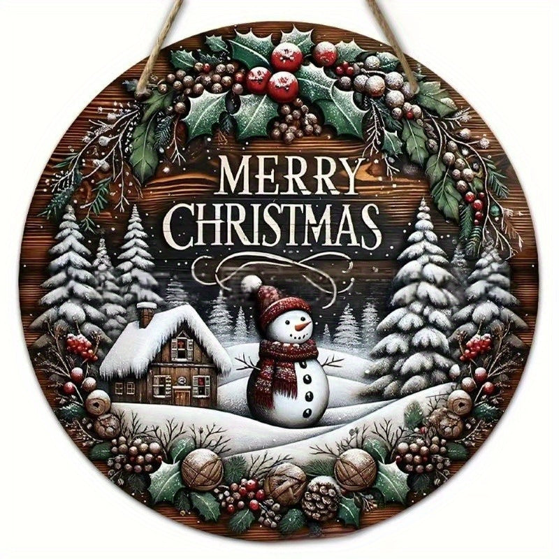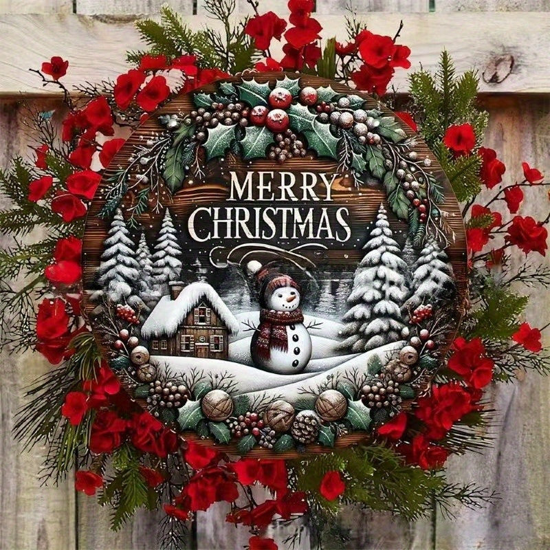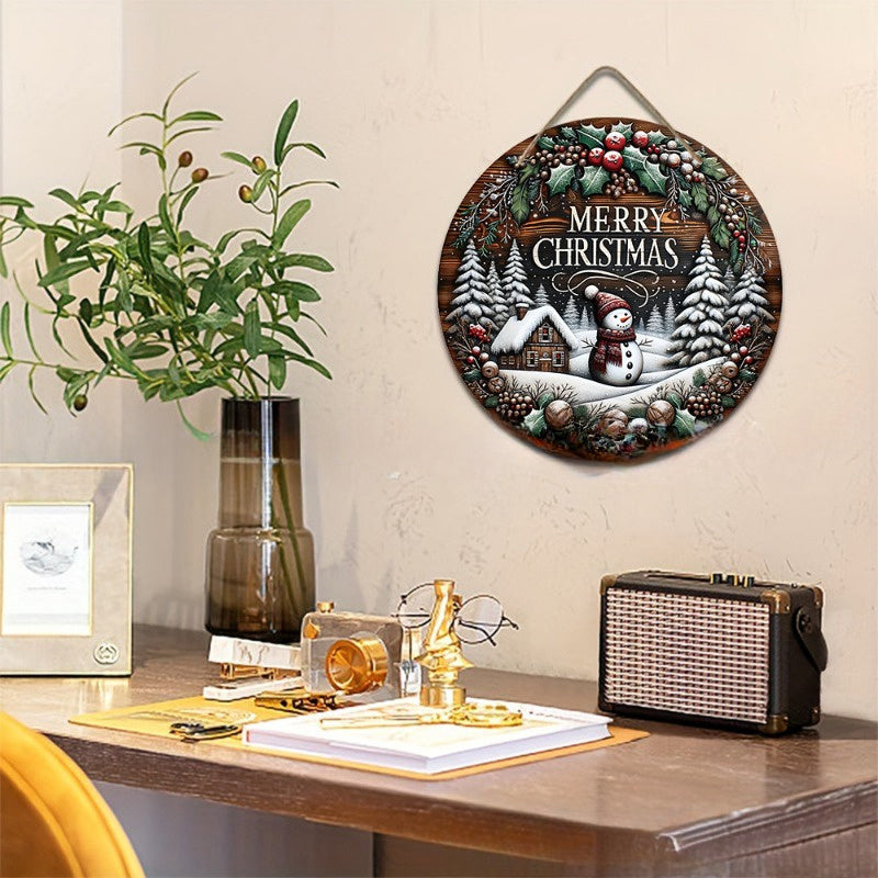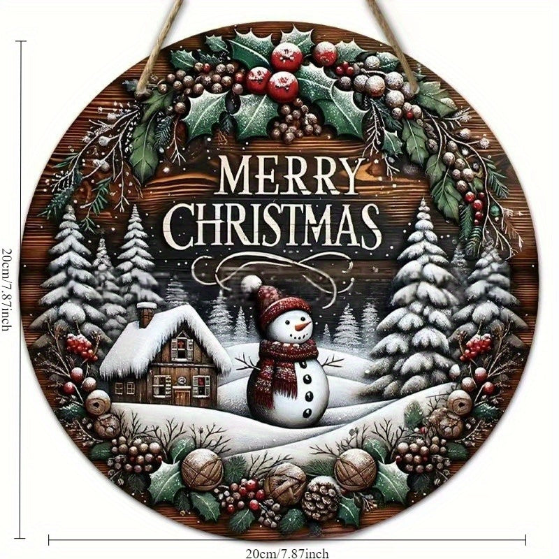 7.87 Inch Round Charming Snowman Wooden Wreath, Perfect for Home & Garden Holiday Decorations, No Power Required!