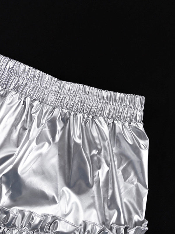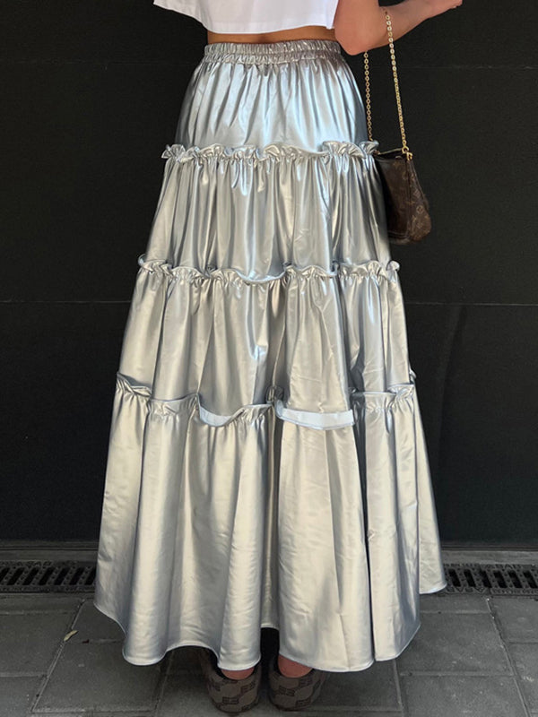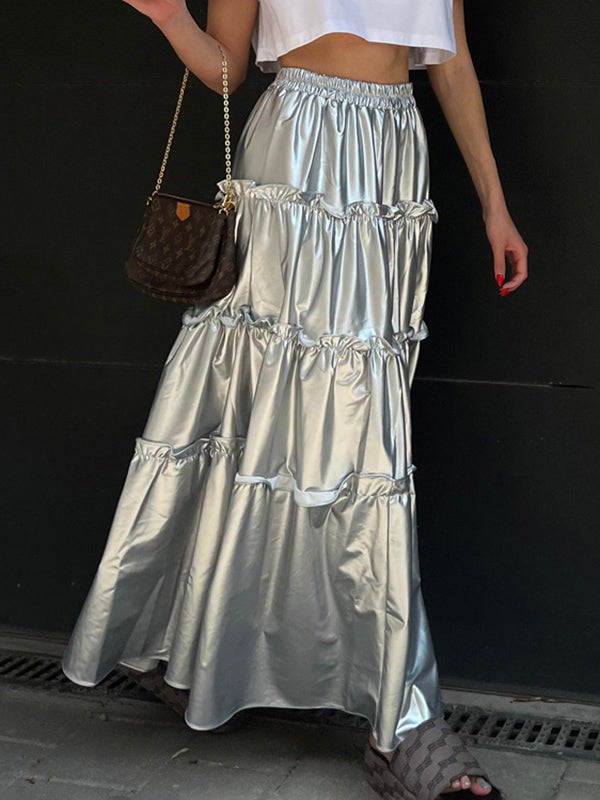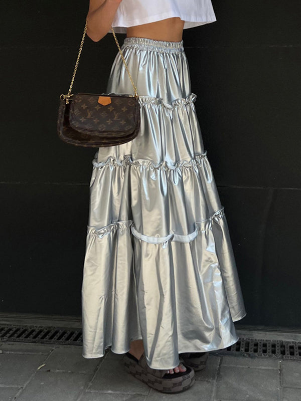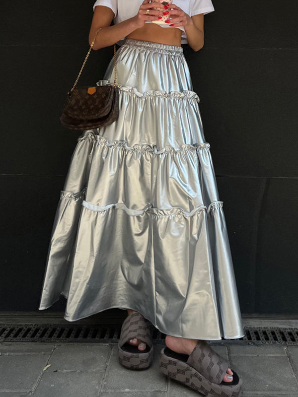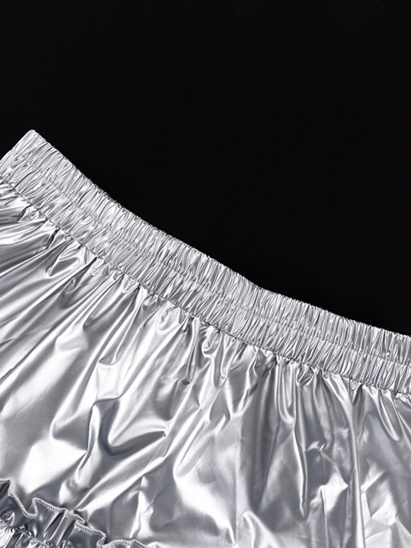 xakxx A-Line High Waisted Elasticity Pleated Solid Color Split-Joint Skirts