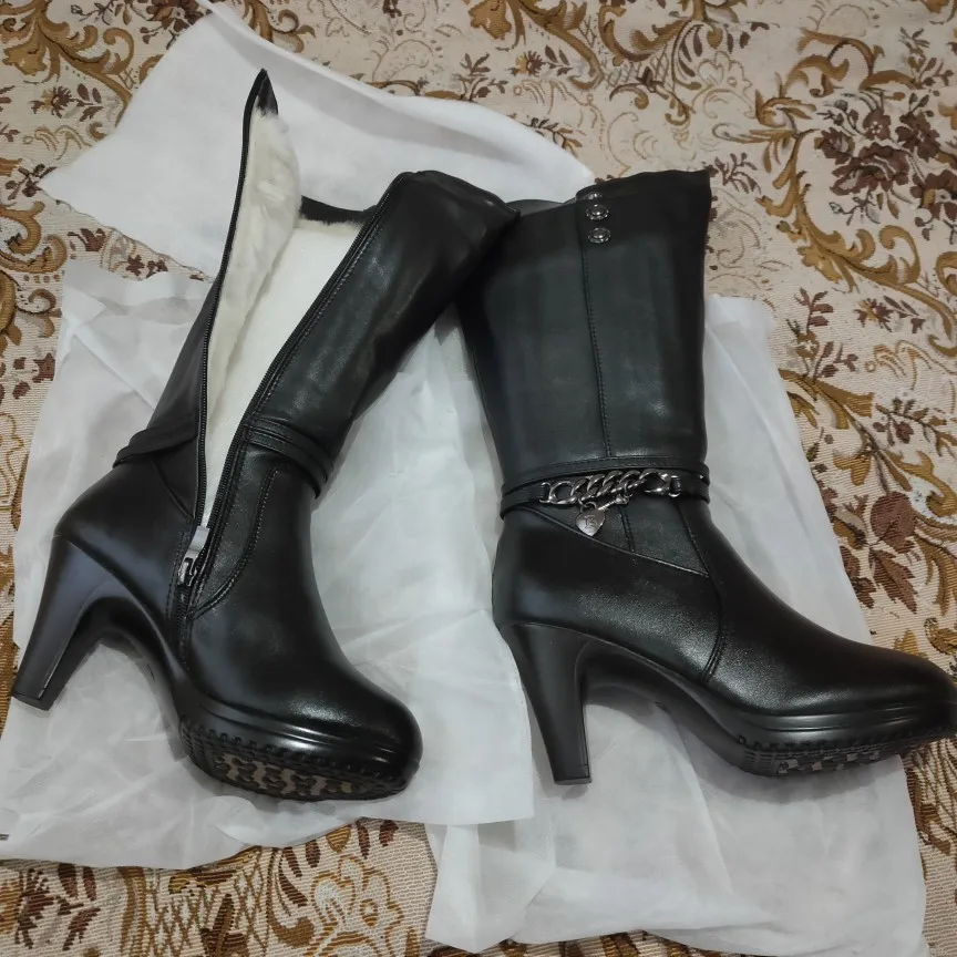 Female winter shoes Woman boots high-heeled Genuine Leather motorcycle boots thick wool warm winter boots riding Boot