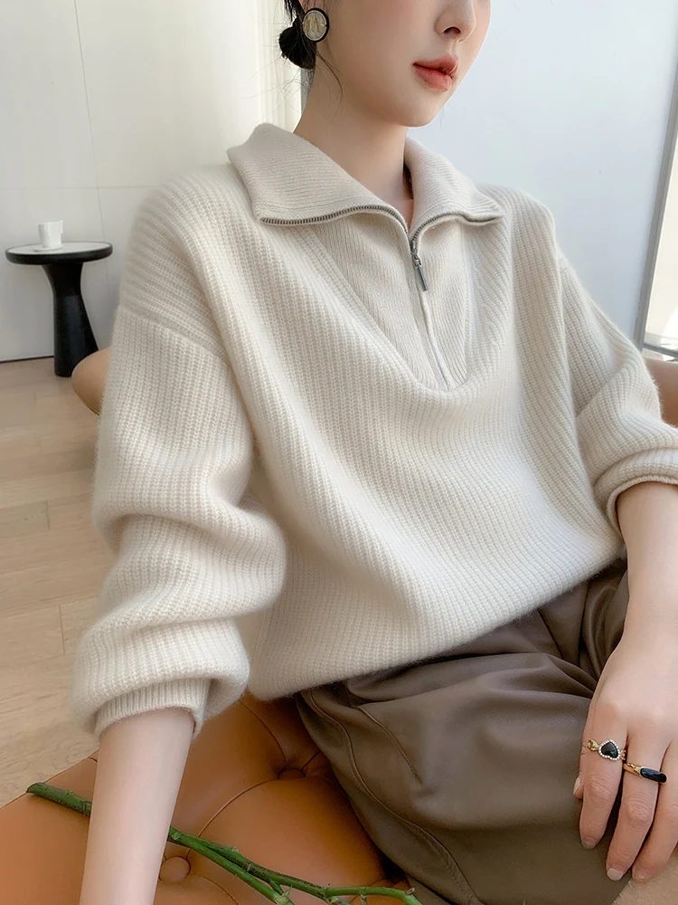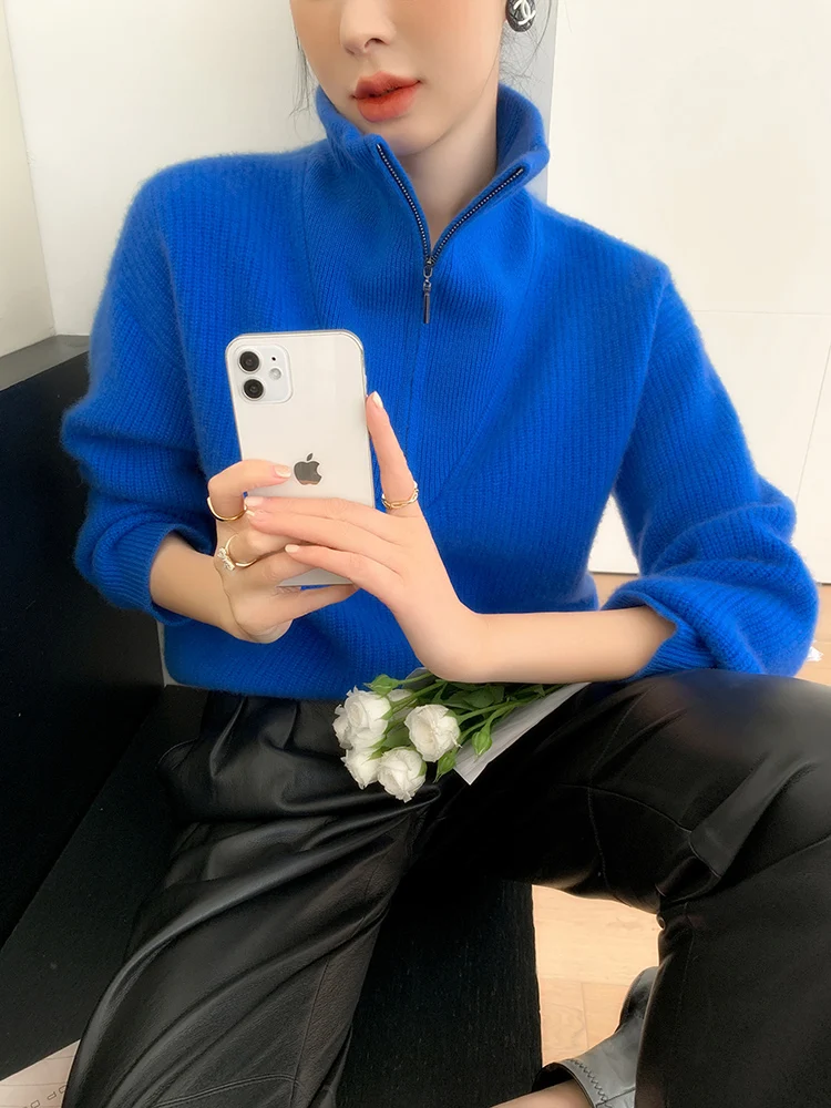 xakxx xakxx-Autumn and winter new semi-zipper cashmere vertical lapel thick sweater women lazy cashmere sweater
