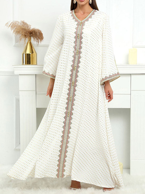 xakxx Batwing Sleeves Long Sleeves Muslim Polka-Dot V-Neck Maxi Dresses