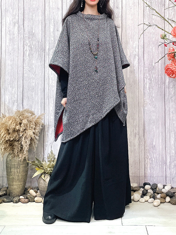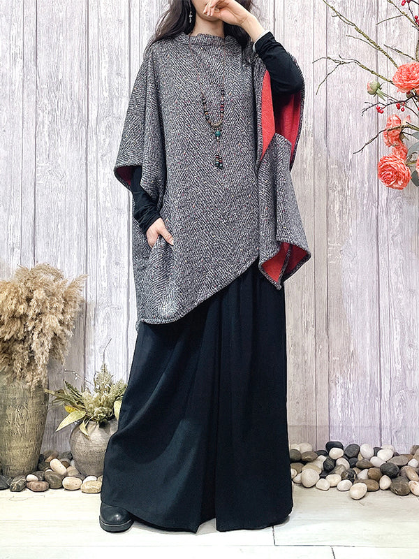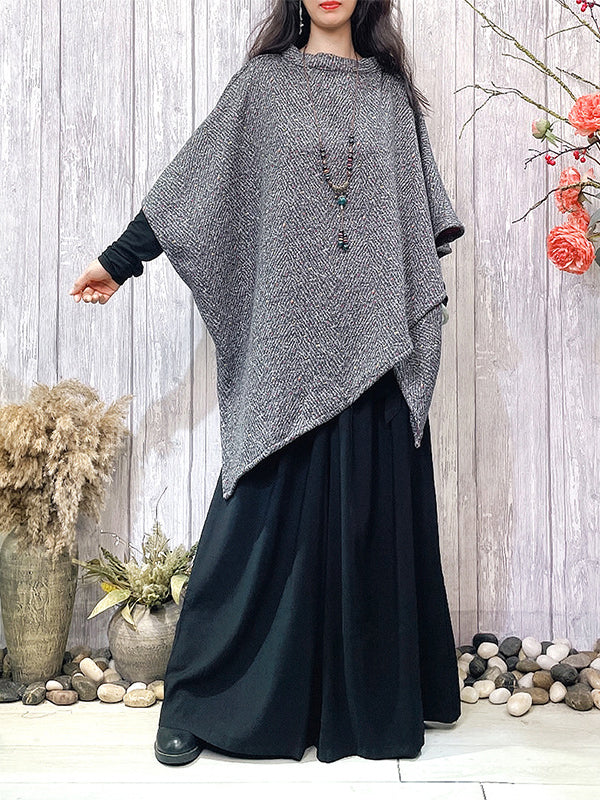 xakxx Batwing Sleeves Loose Asymmetric Round-Neck Cape Outerwear