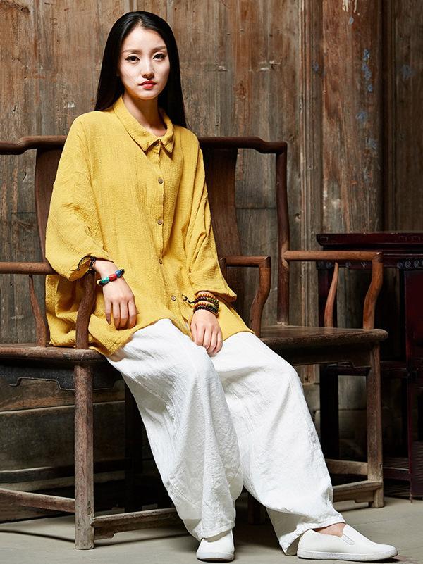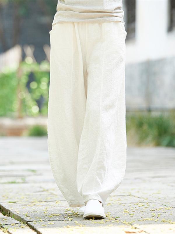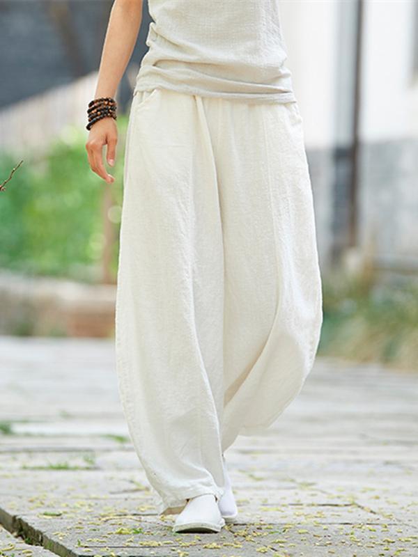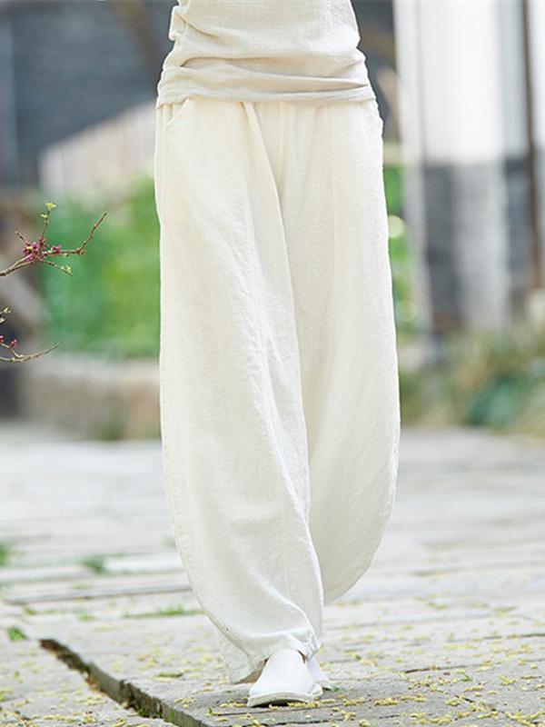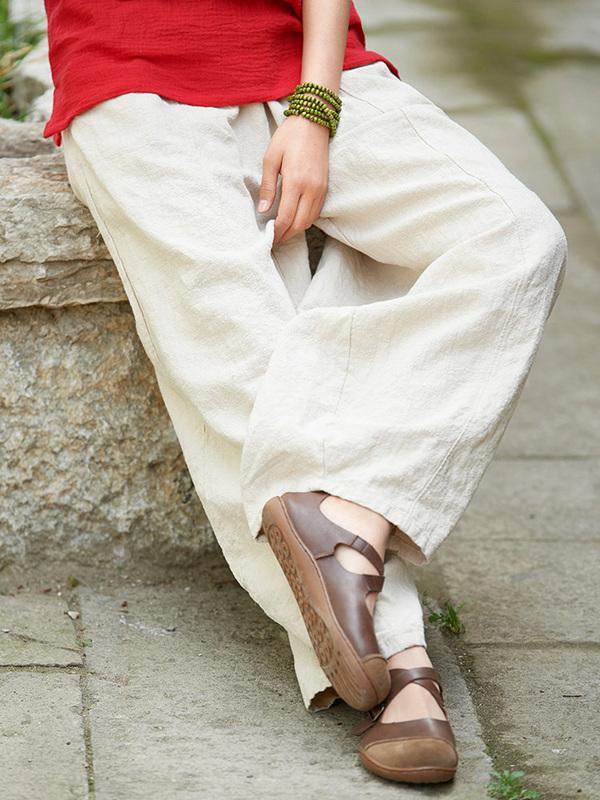 xakxx Beige&White Ramie Cotton Casual Linen Bloomers Pants