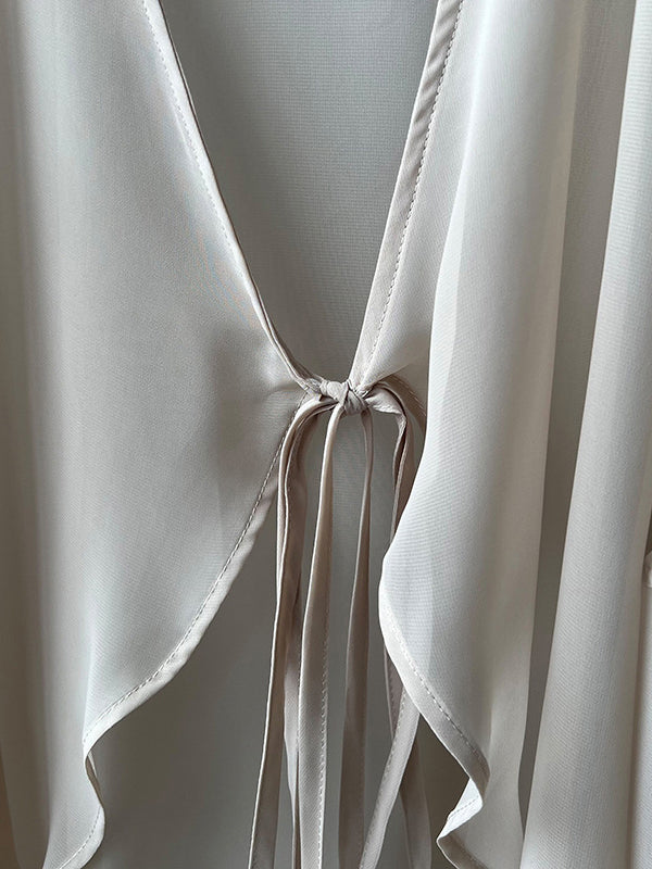 xakxx Bishop Sleeve Long Sleeves See-Through Split-Joint Tied Collarless Blouses&Shirts Tops