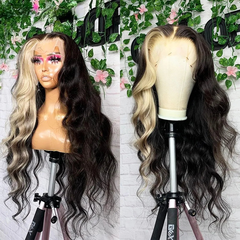 Brazilian Human Hair Highlight Blonde Wig Piano Red Colored Body Wave Lace Front Wig 13x4 Synthetic Lace Frontal Wig Natural Hairline