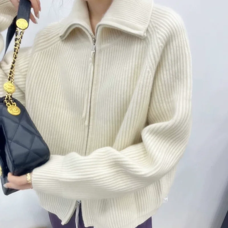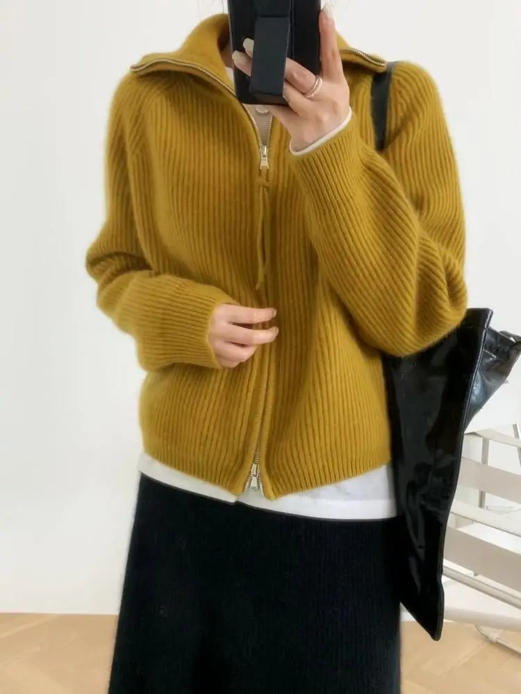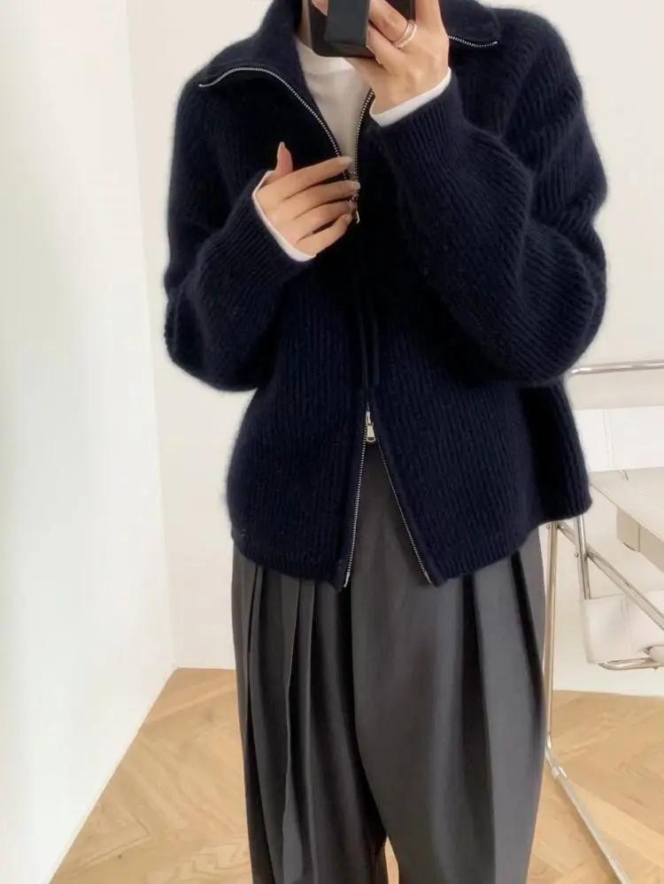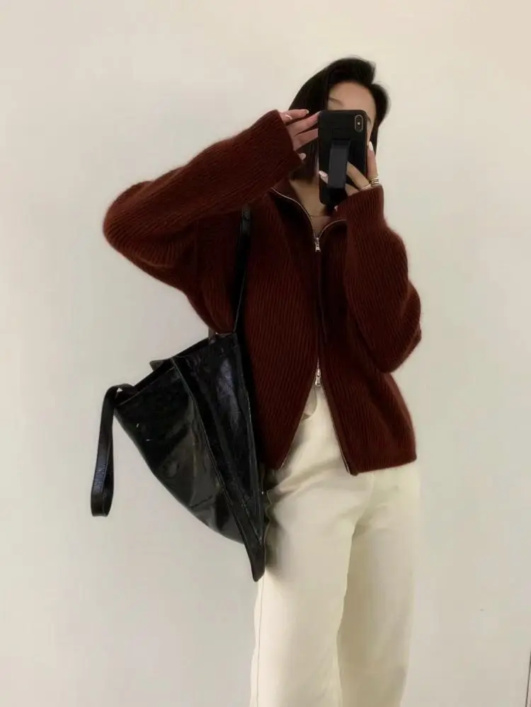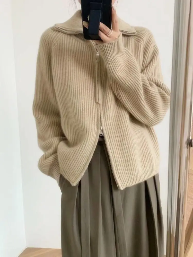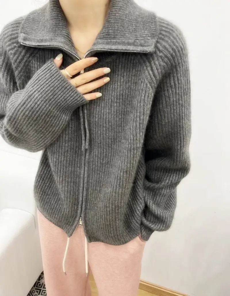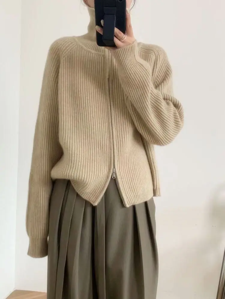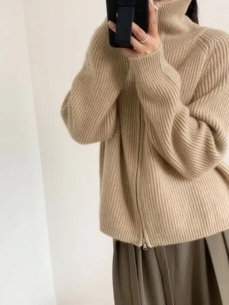 xakxx xakxx-Cashmere cardigan female 100 pure cashmere loose lazy turtleneck zipper sweater coat