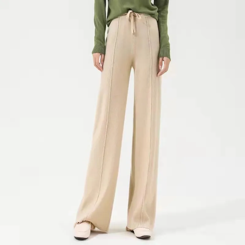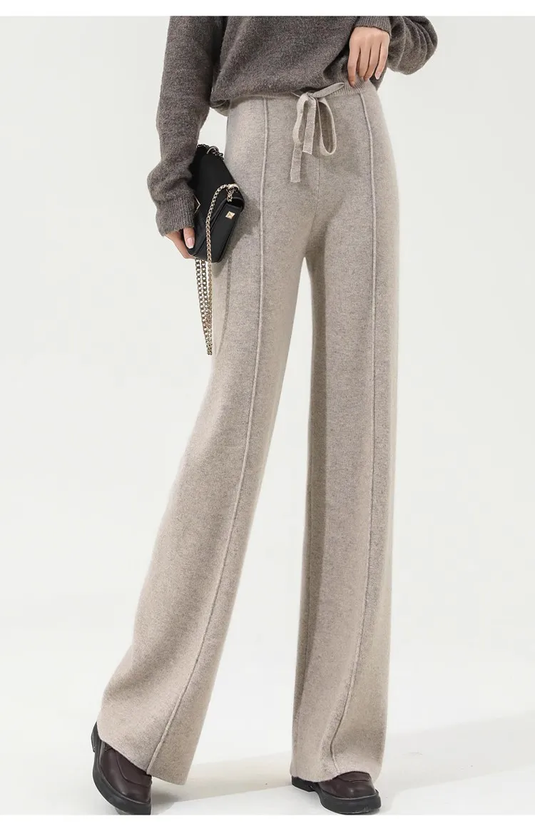 xakxx xakxx-Cashmere-wool wide-leg pants for women wear high-waisted knitted pants outside the thick vertical tube.