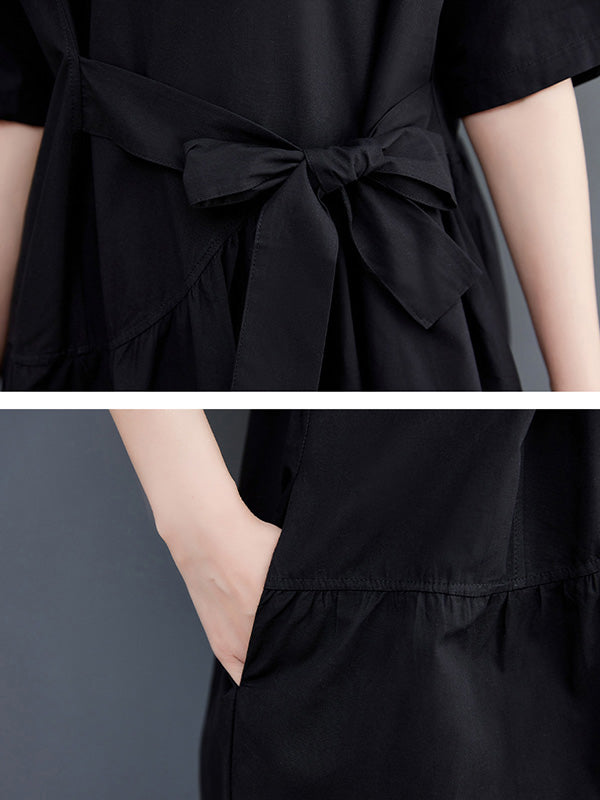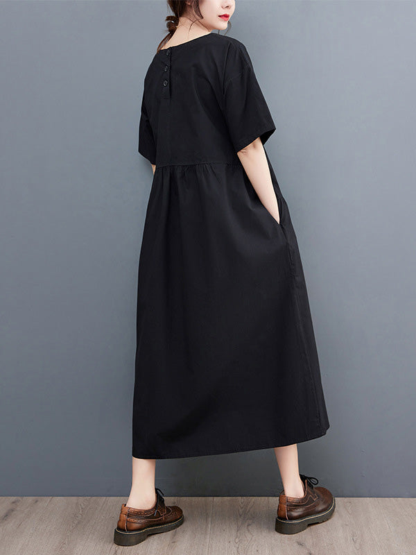 xakxx Casual Half Sleeves Loose Solid Color Round-Neck Midi Dresses