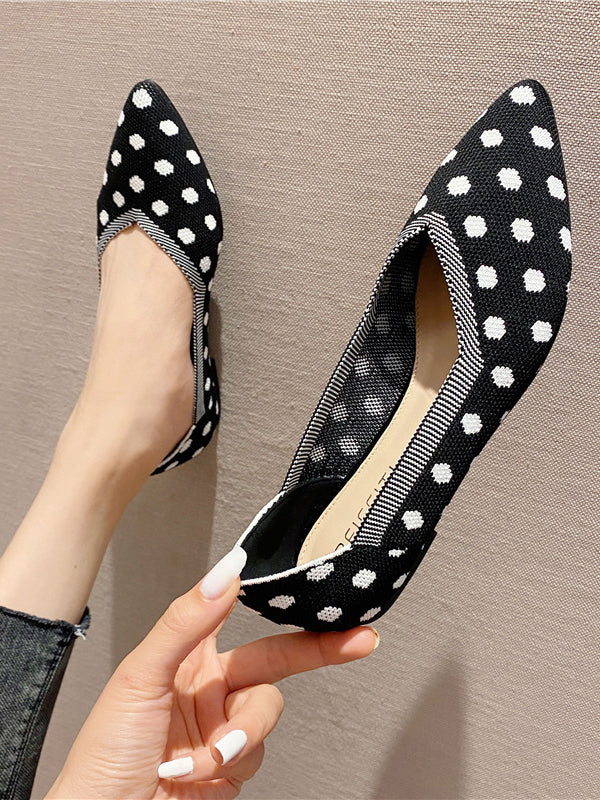 xakxx Contrast Color Pointed-Toe Polka-Dot V-Cut Low Heels Flat Shoes