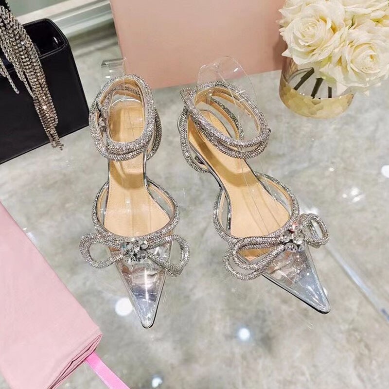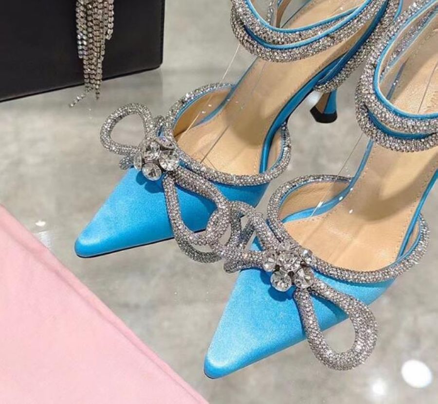 Back to school Hot Glitter Rhinestones Women Pumps Crystal bowknot Satin Summer Lady Shoes Genuine leather High heels Party Prom Shoes