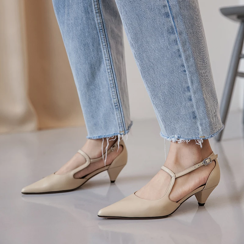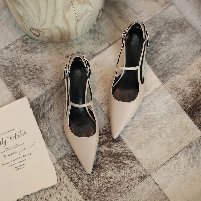 xakxx Fall Outfit High-Heeled Sandals Women's Summer Shoes Solid Color Buckle Strap Pumps Pointed Toe Ladies Suit Shoes Female Office Shoes