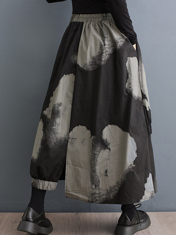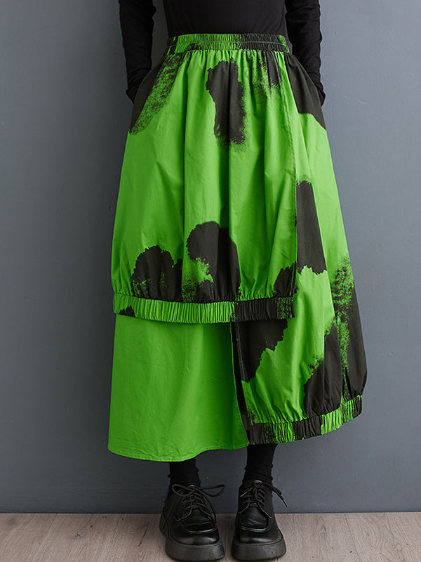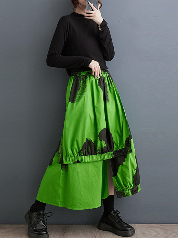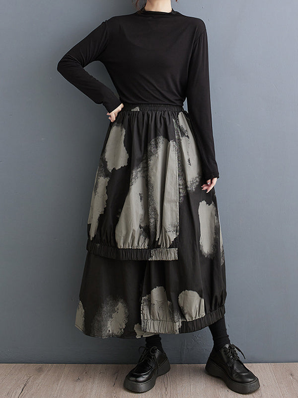 xakxx High Waisted Loose Asymmetric Elasticity Pleated Split-Joint Skirts