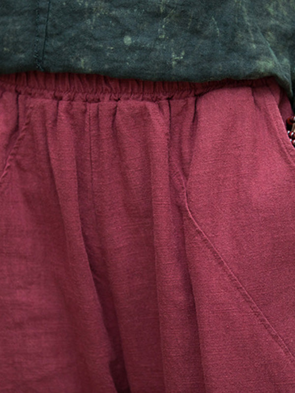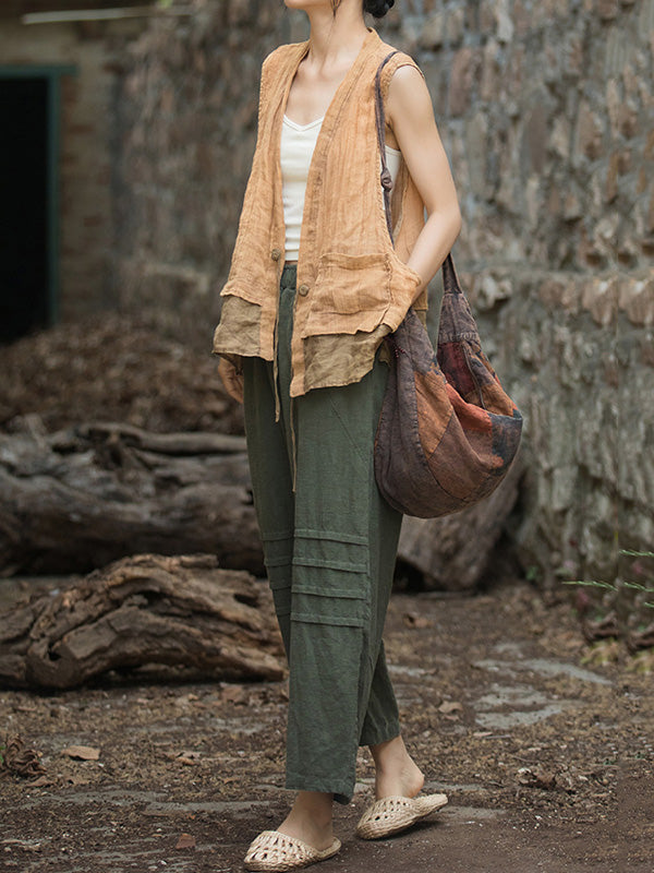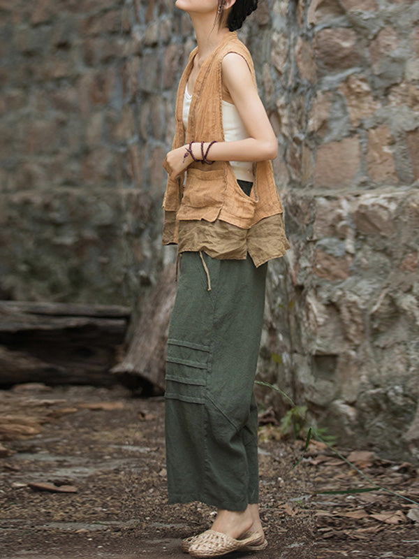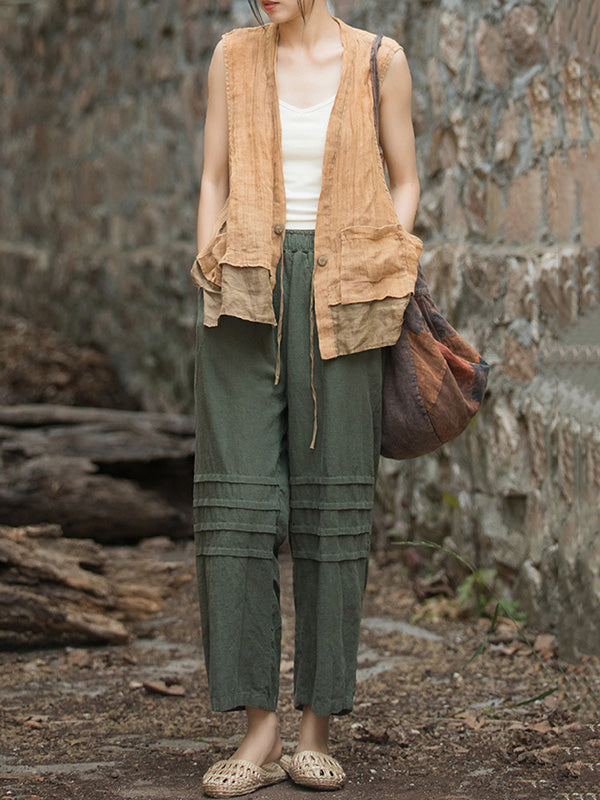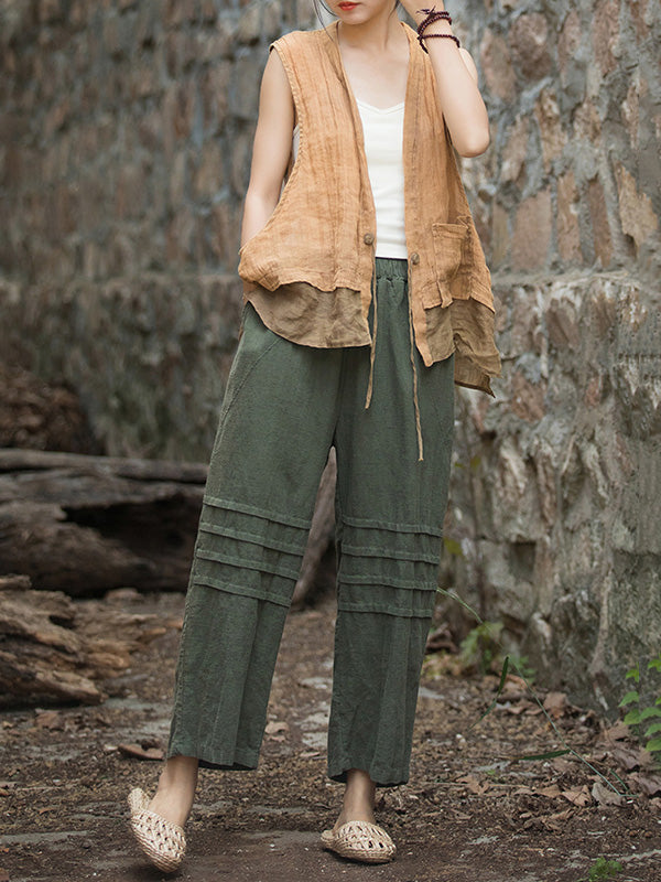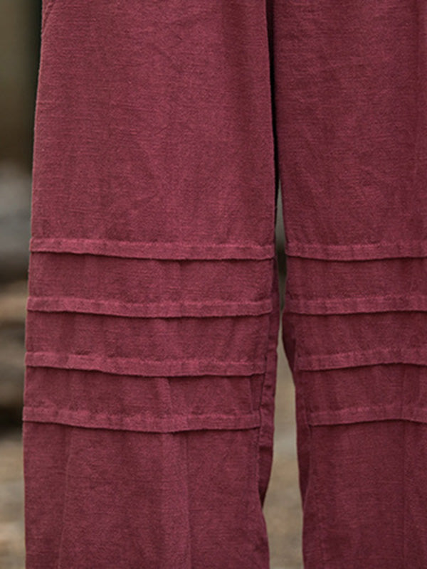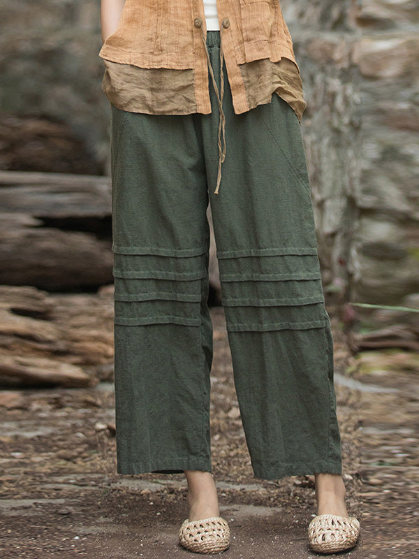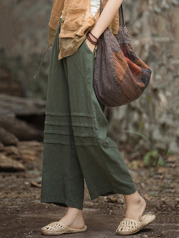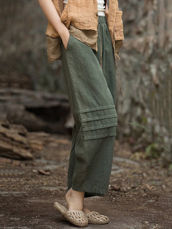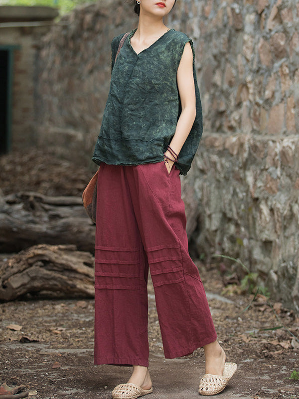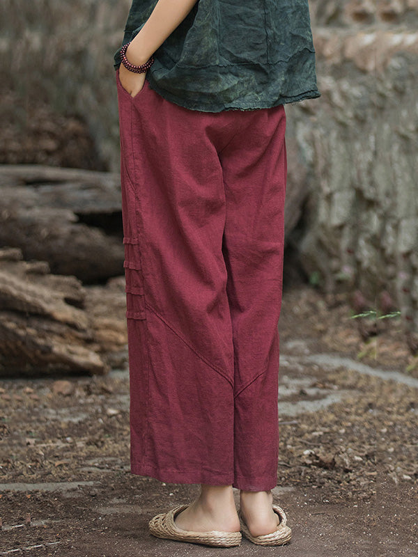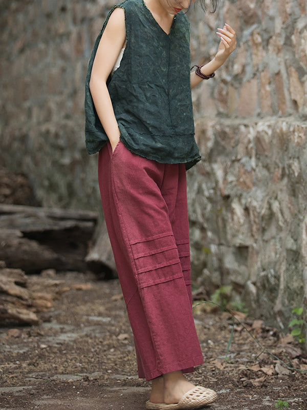 xakxx High Waisted Loose Pleated Solid Color Split-Joint Ninth Pants Trousers