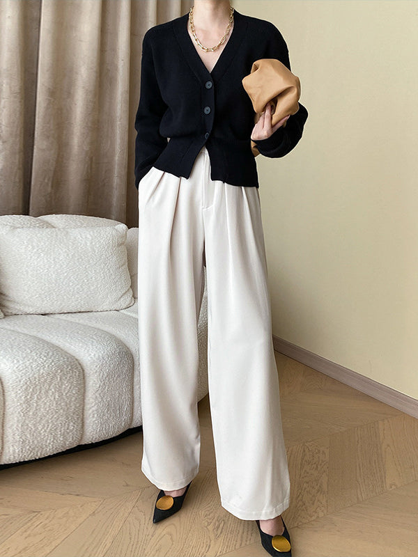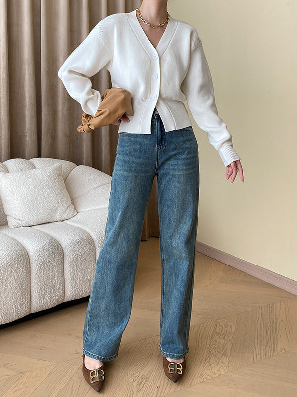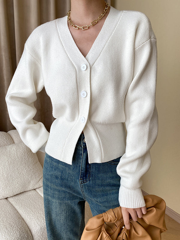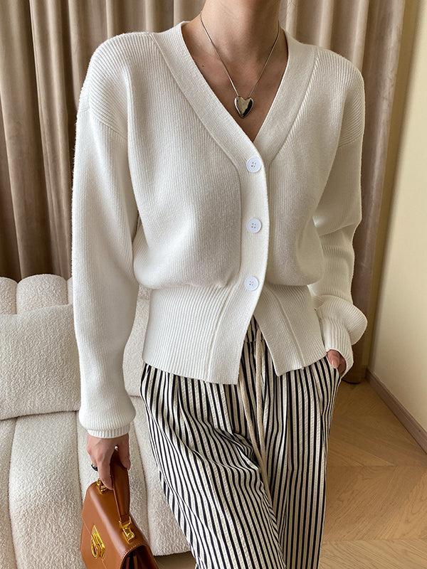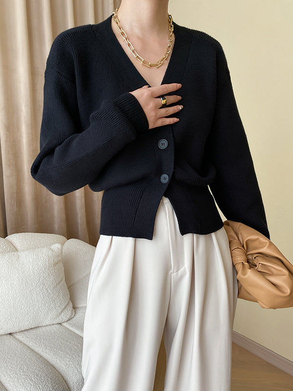 xakxx Long Sleeves Loose Solid Color V-Neck Cardigan Tops