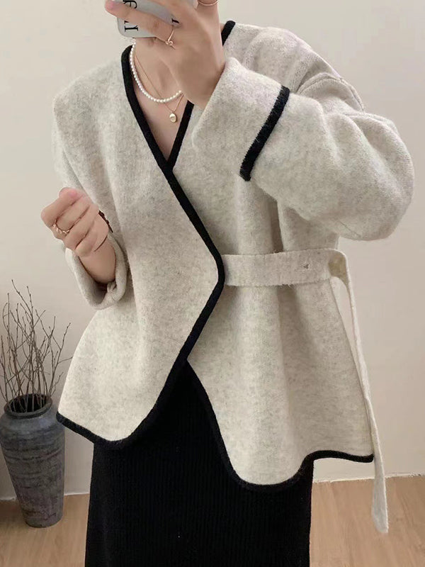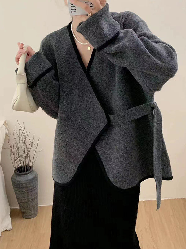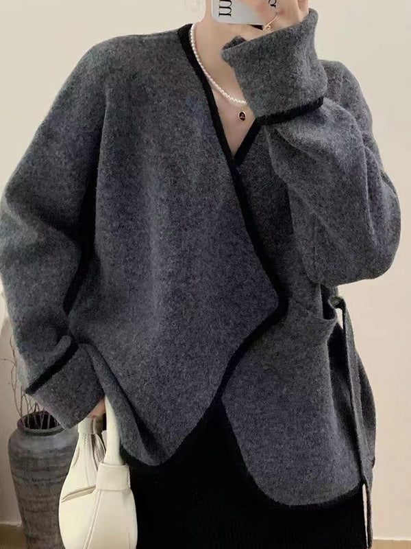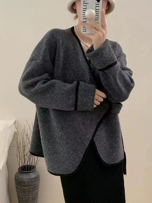 xakxx Long Sleeves Loose Split-Joint V-Neck Cardigan Tops