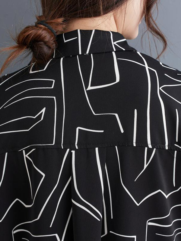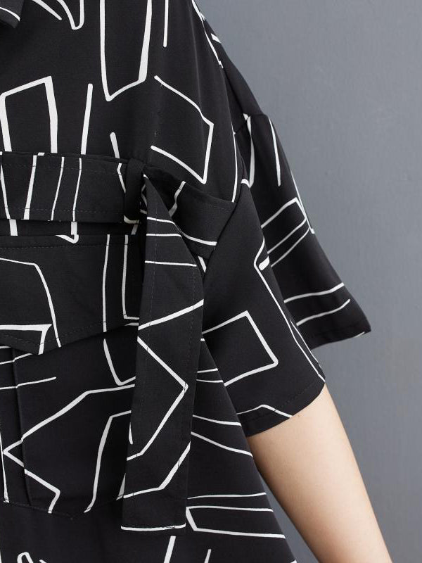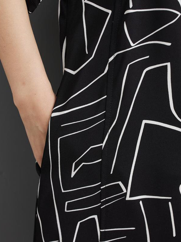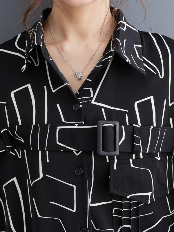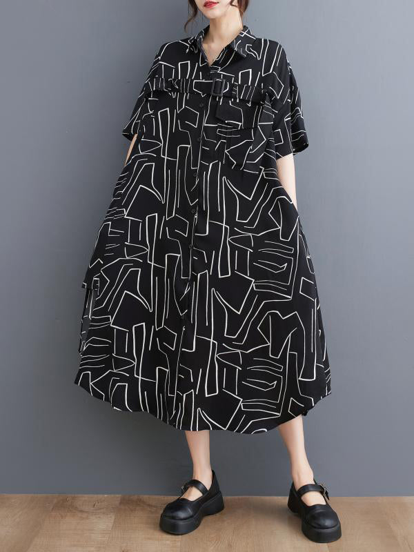 xakxx Loose Abstract Printed Lapel Midi Dresses