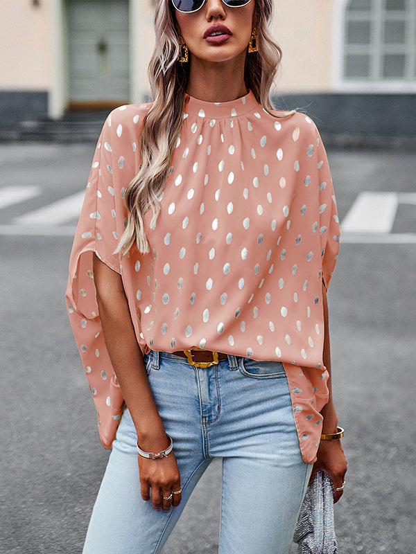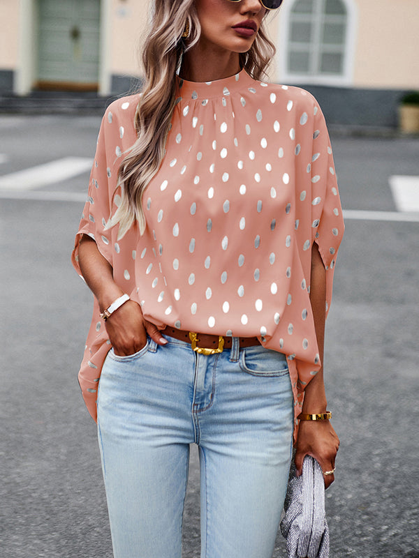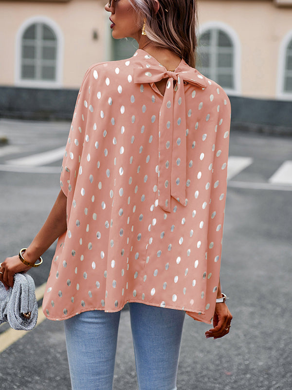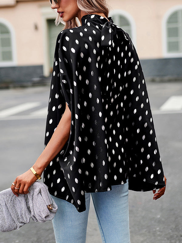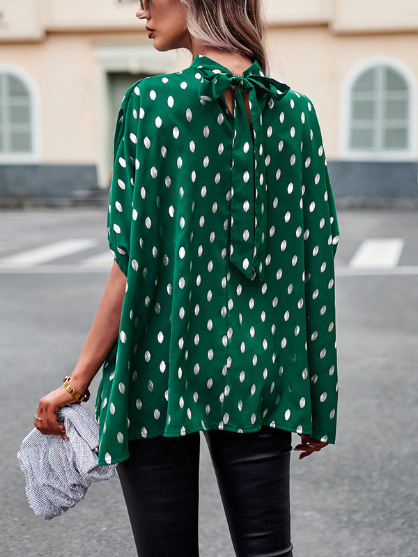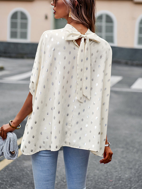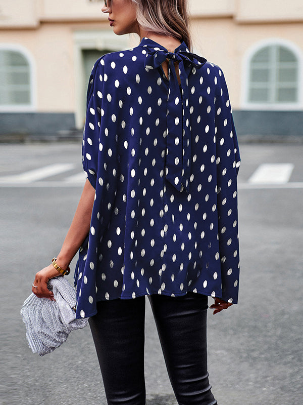 xakxx Loose Bandage Polka Dot Round-Neck Blouses&Shirts Tops