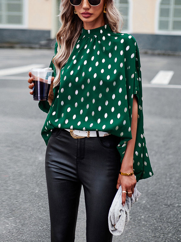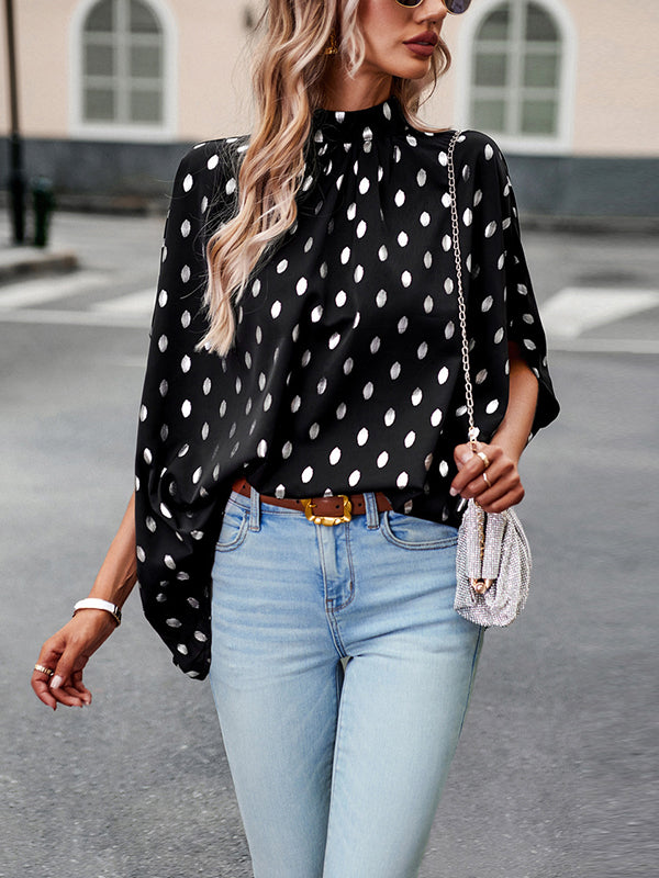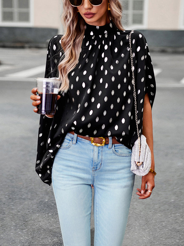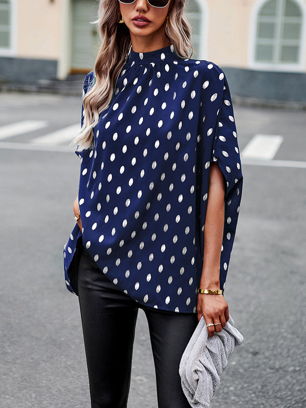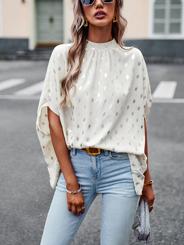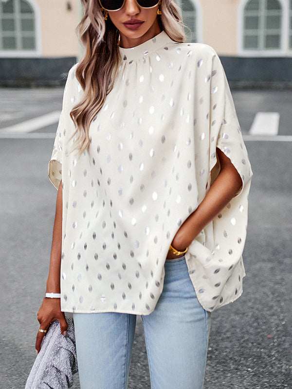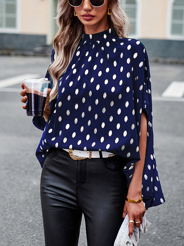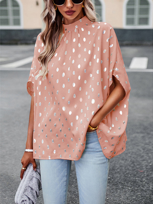 xakxx Loose Bandage Polka Dot Round-Neck Blouses&Shirts Tops