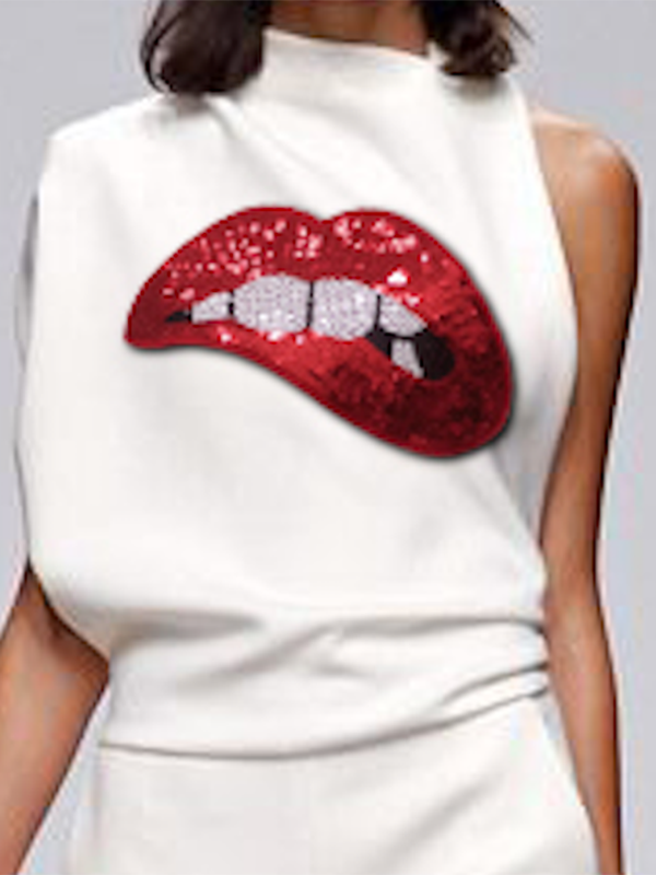 xakxx Loose Short Sleeves Applique Asymmetric Stand Collar Blouses&Shirts Tops