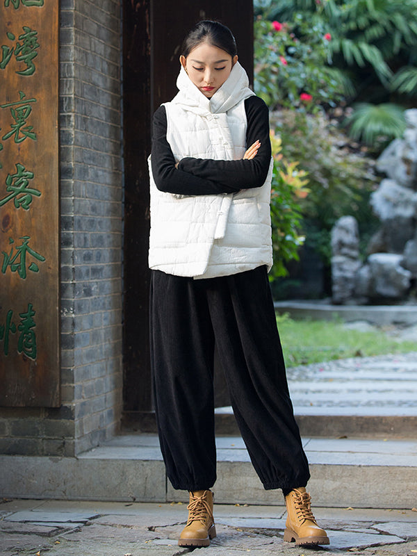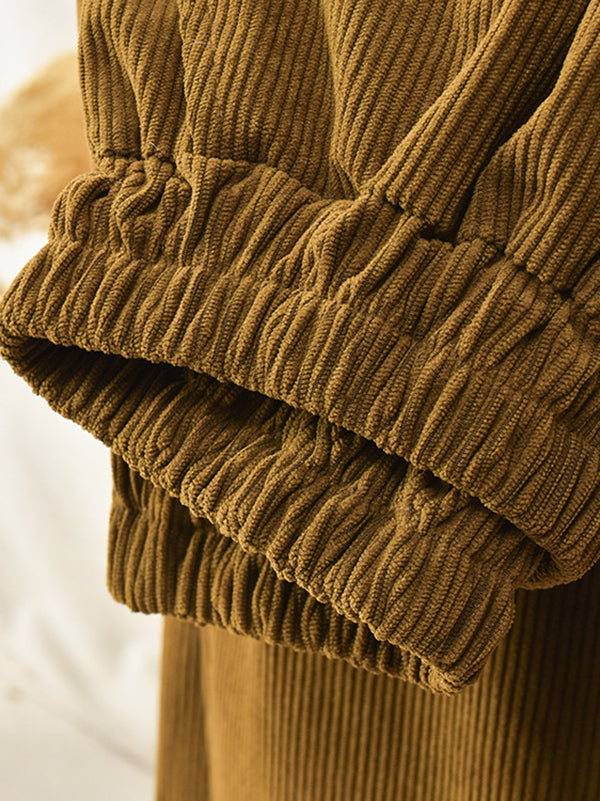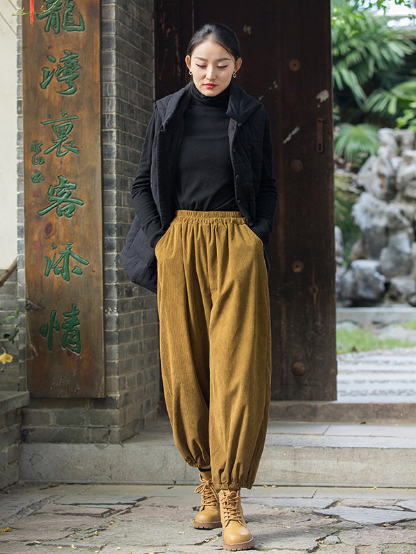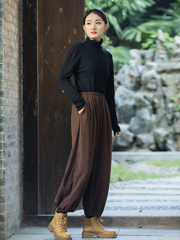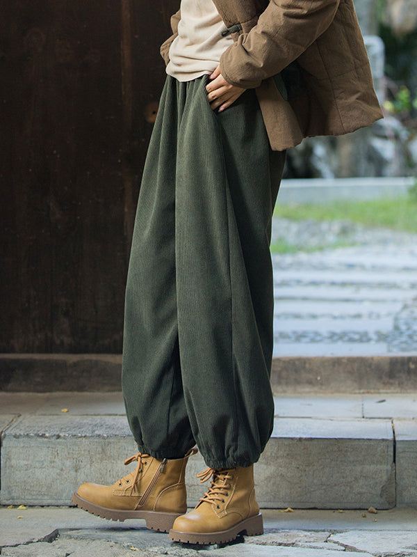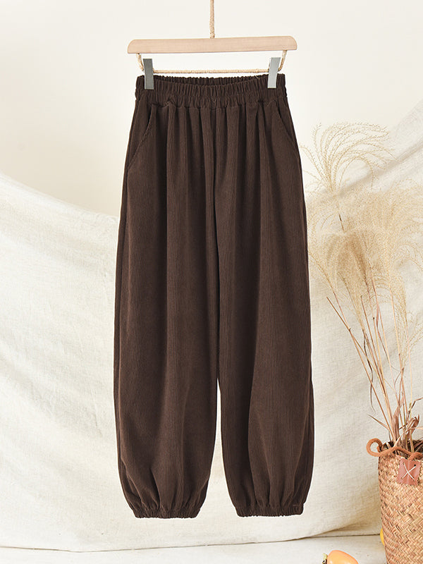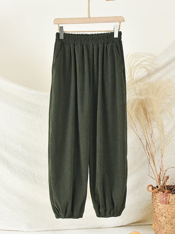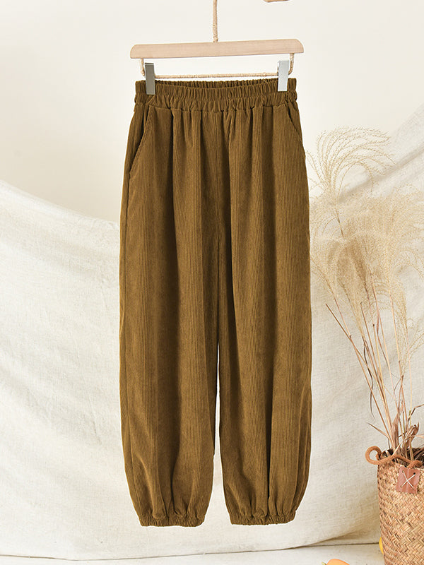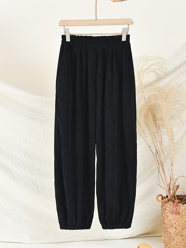 xakxx Loose Solid Color Corduroy Casual Ninth Pants Bottoms