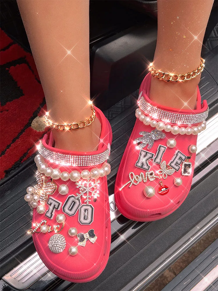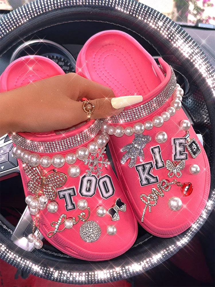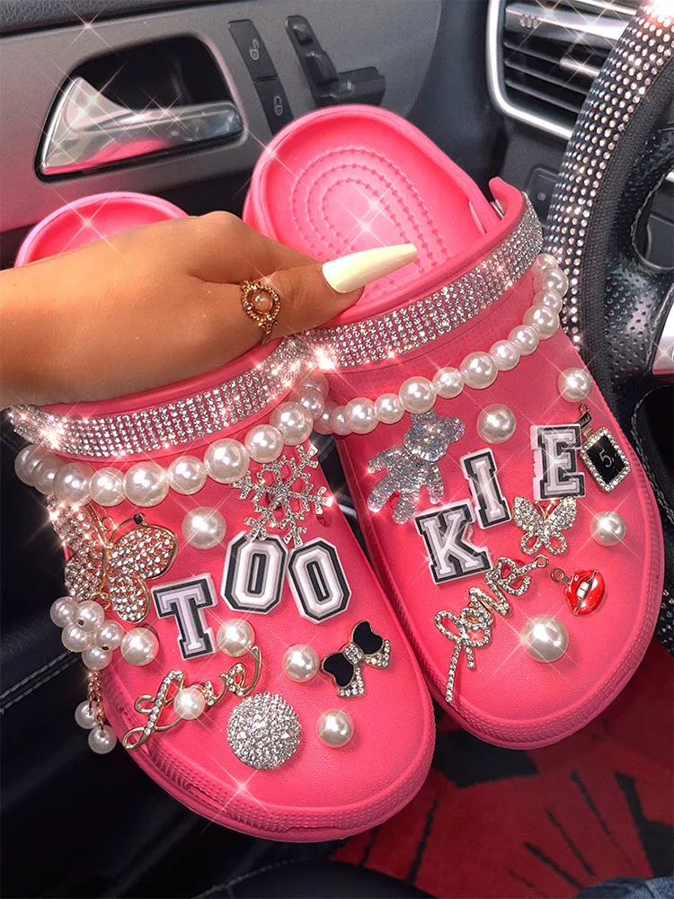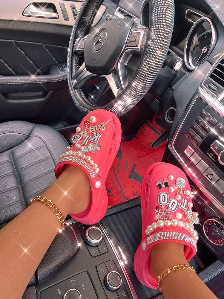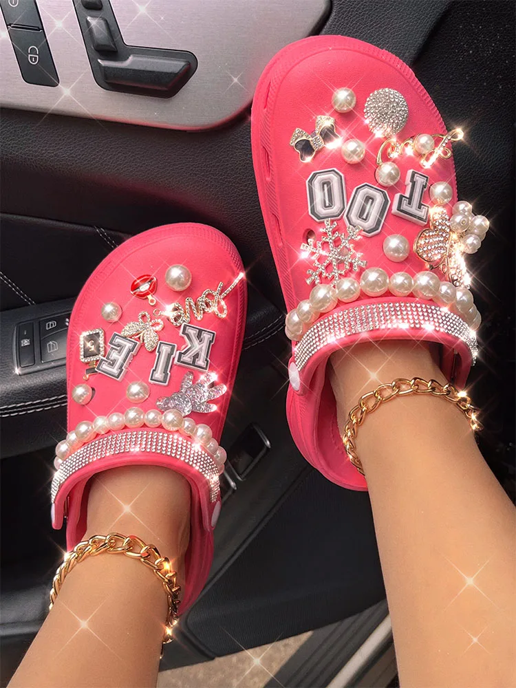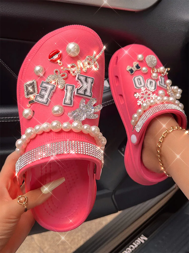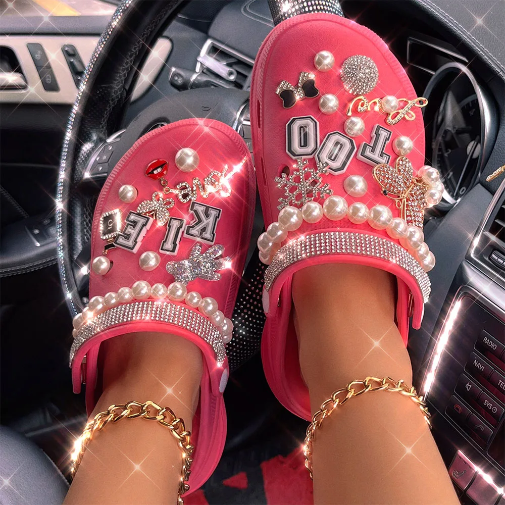 xakxx New Arrival Summer Women Slippers Platform Garden Sandals Pearl Rhinestone Charm Cave Slides Cute Fashion Ladies Shoes Plus Size