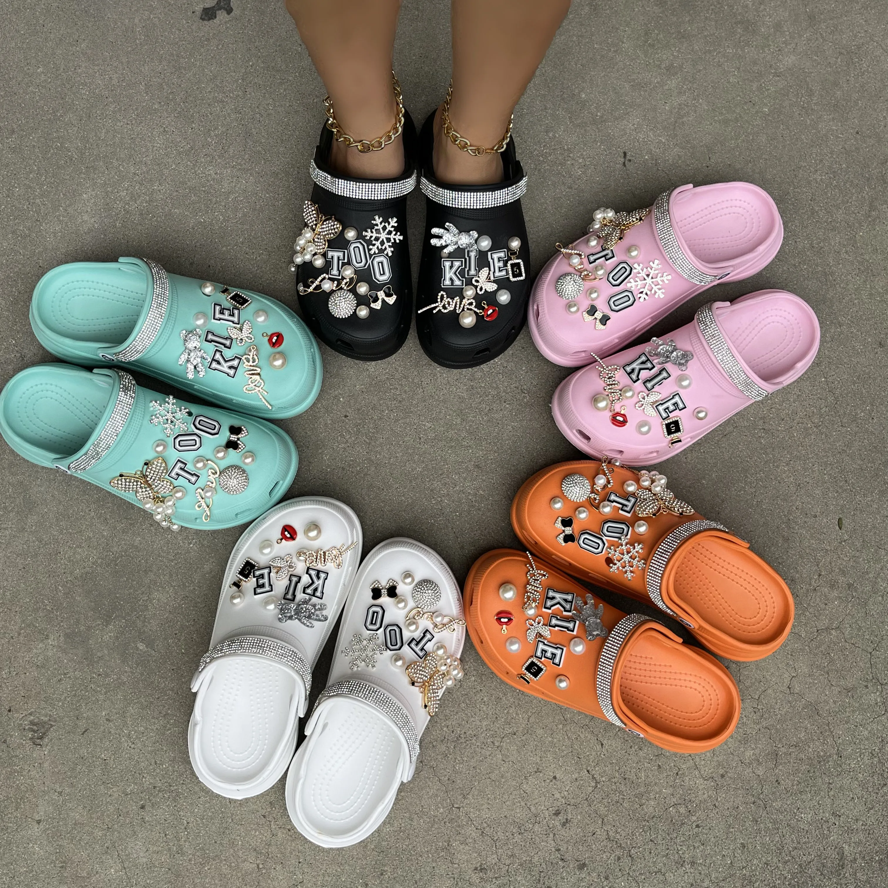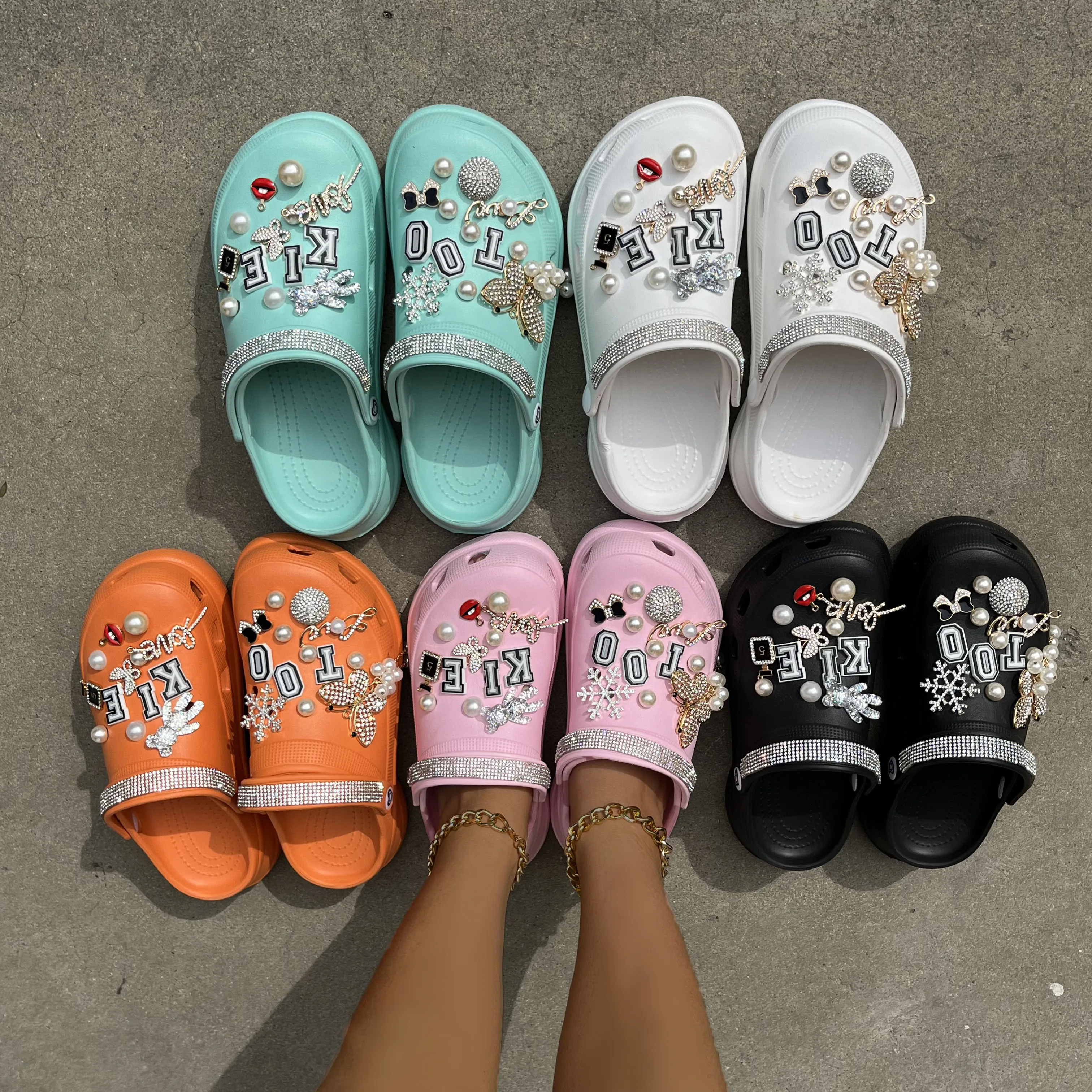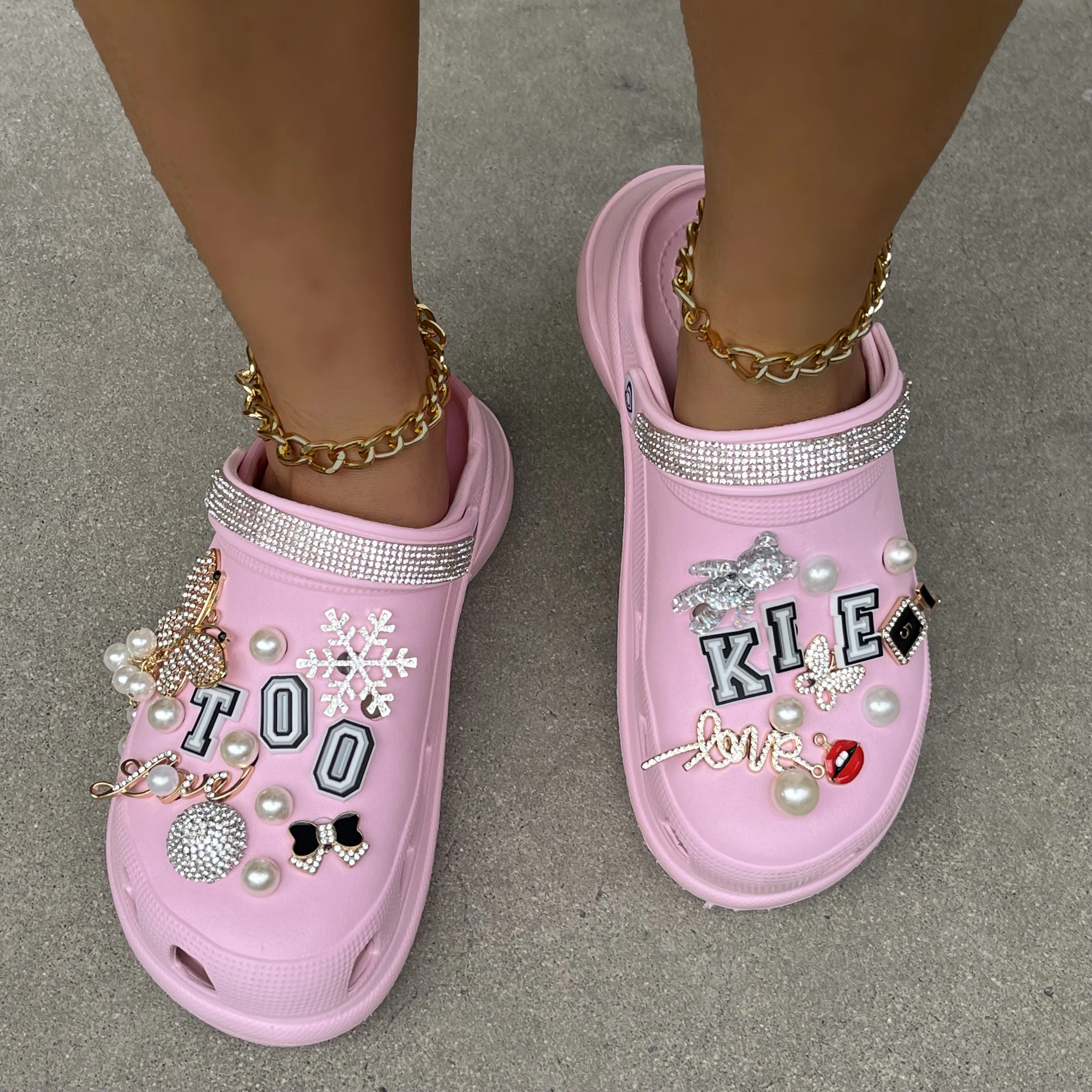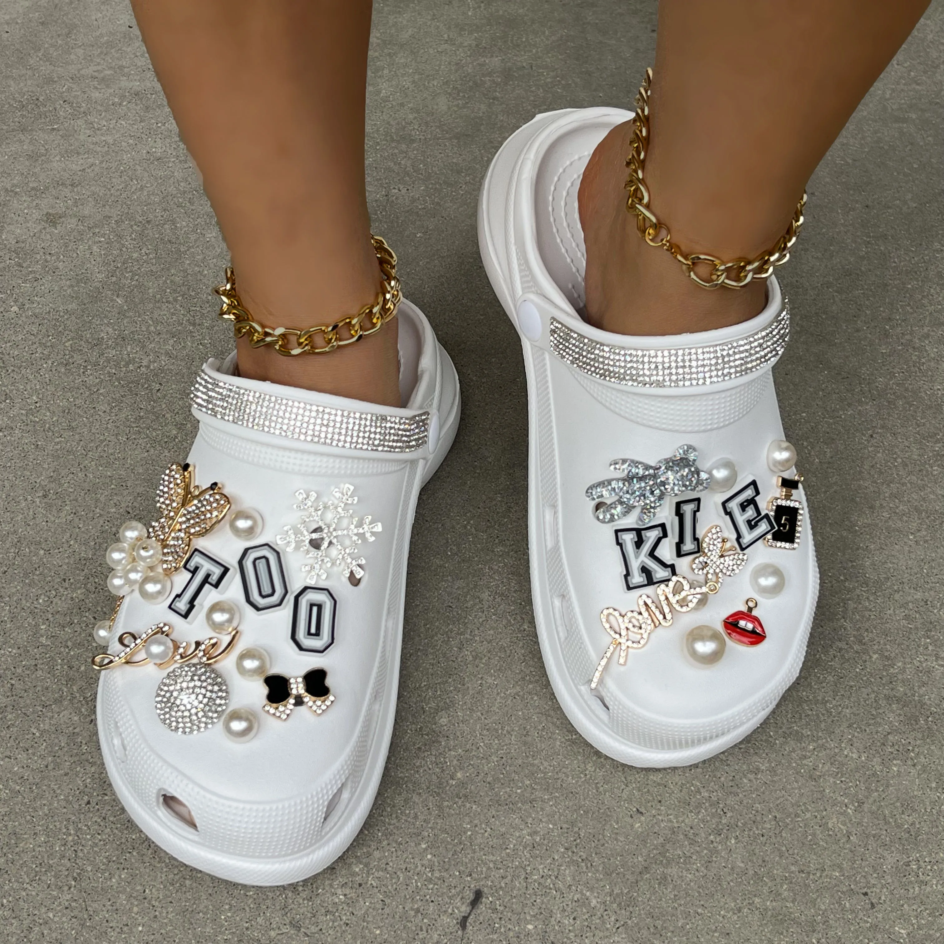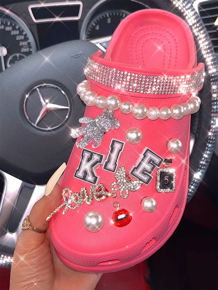 xakxx New Arrival Summer Women Slippers Platform Garden Sandals Pearl Rhinestone Charm Cave Slides Cute Fashion Ladies Shoes Plus Size