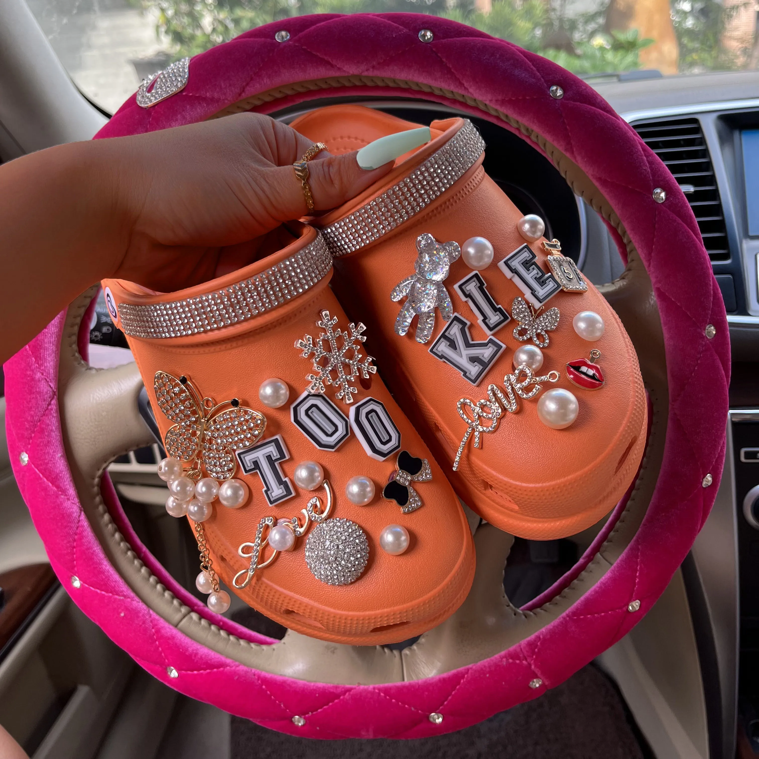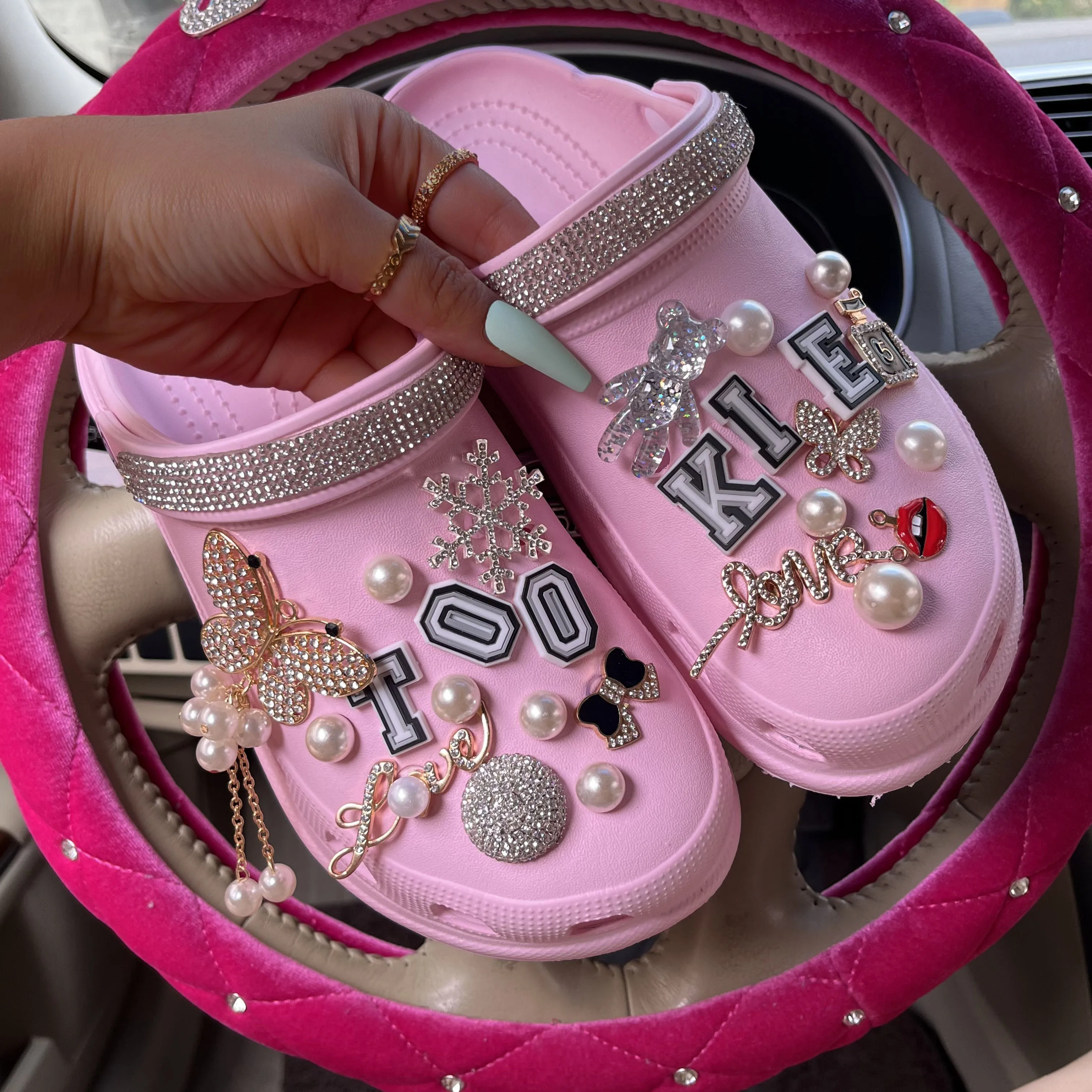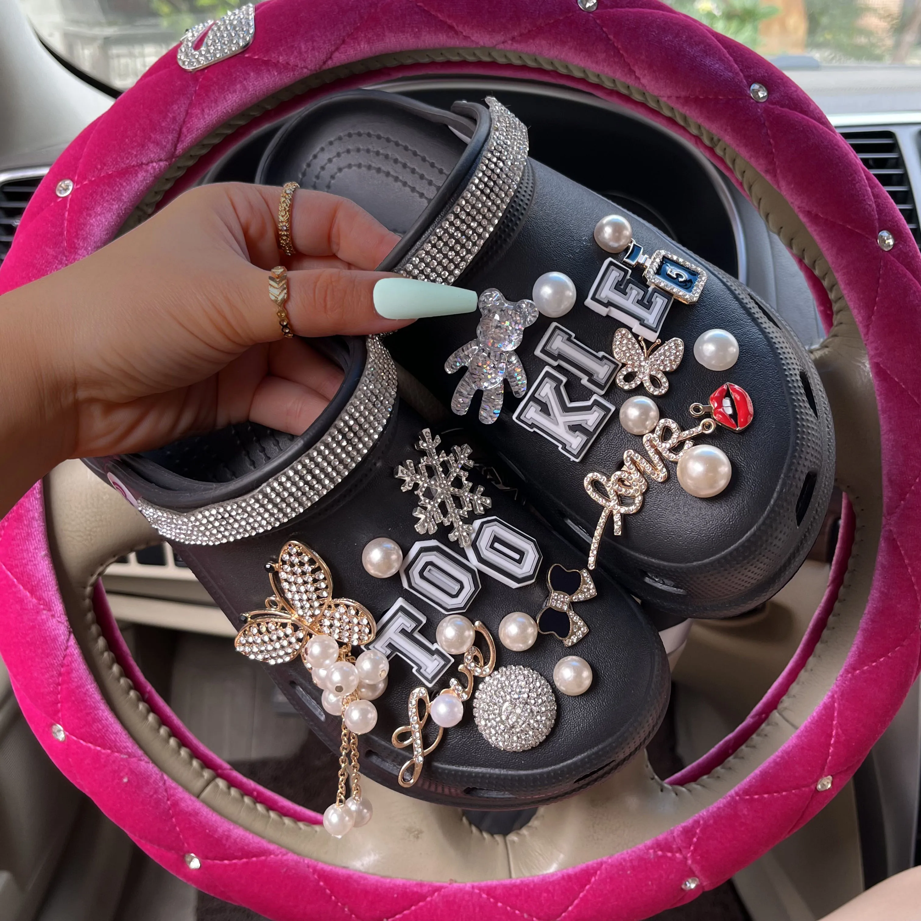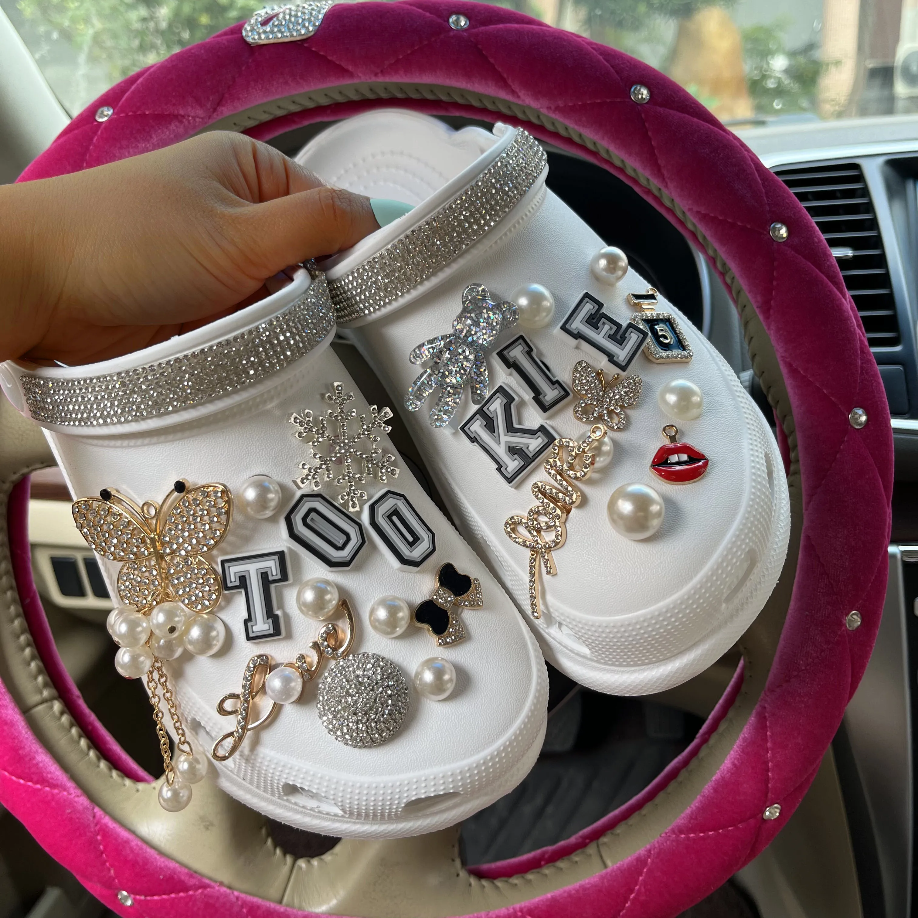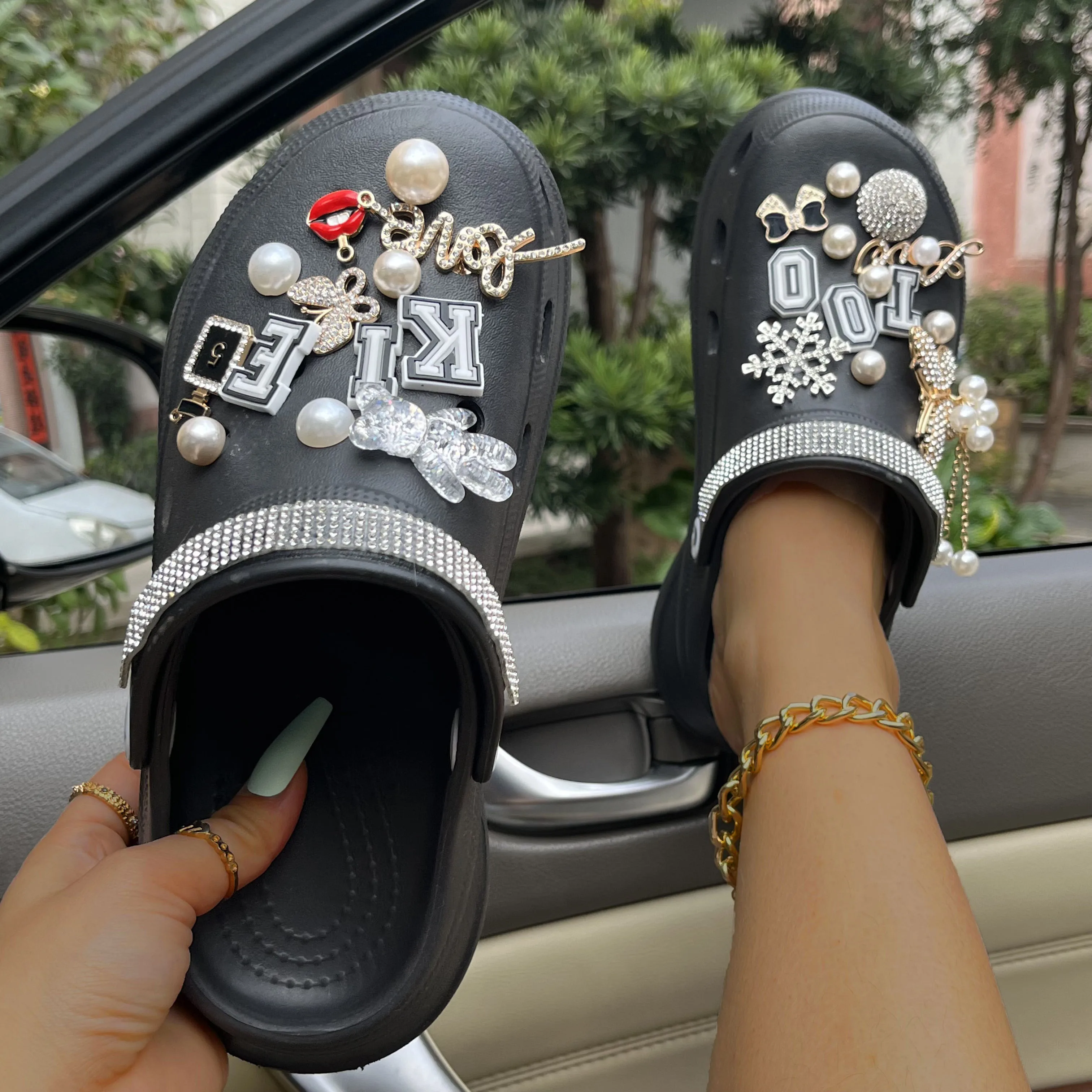 xakxx New Arrival Summer Women Slippers Platform Garden Sandals Pearl Rhinestone Charm Cave Slides Cute Fashion Ladies Shoes Plus Size