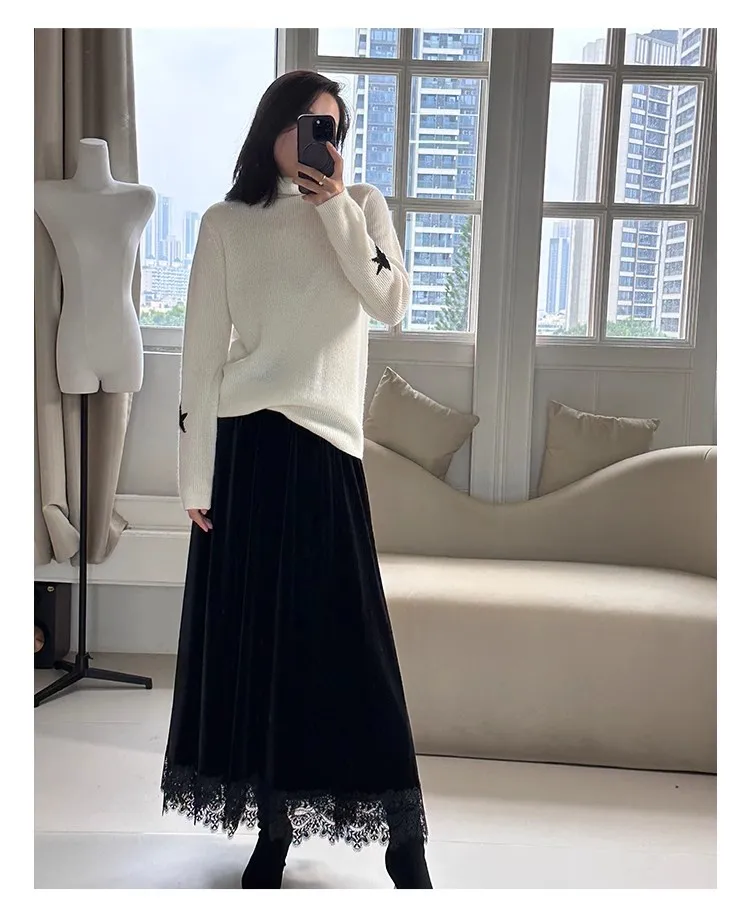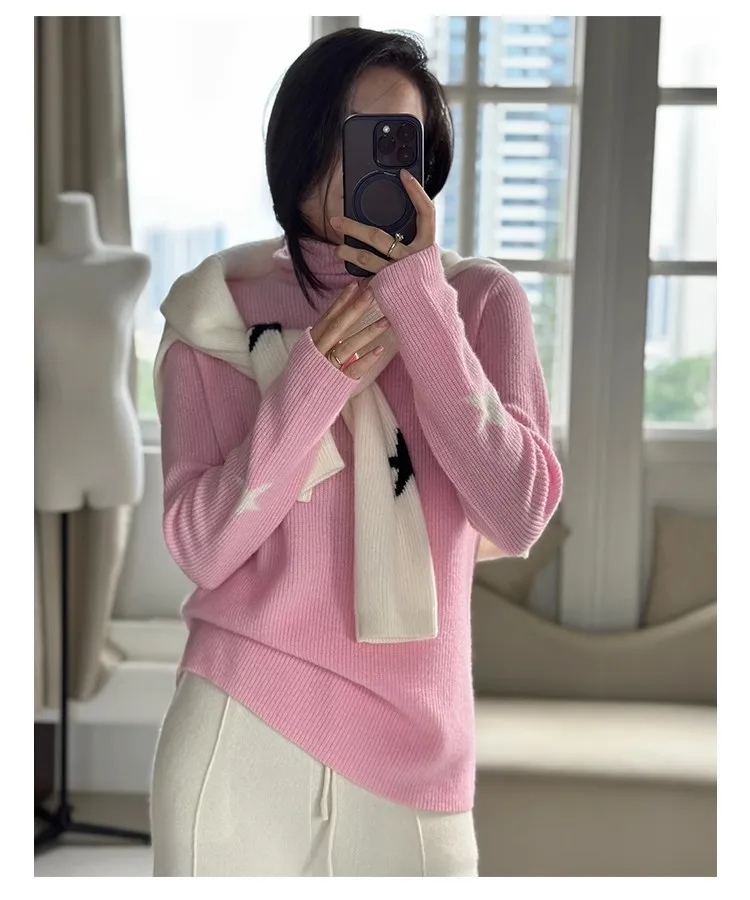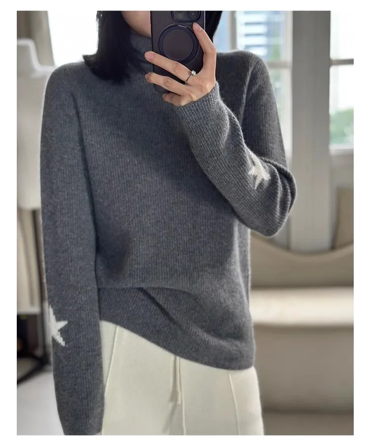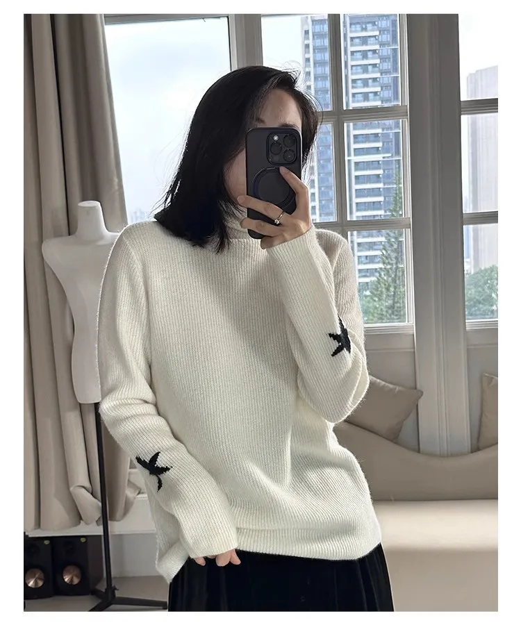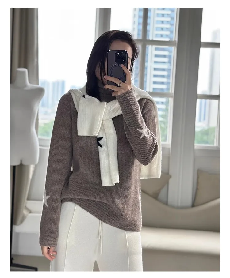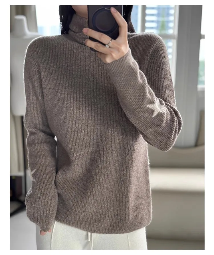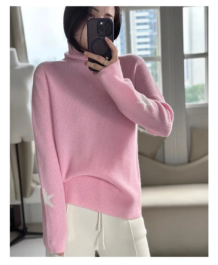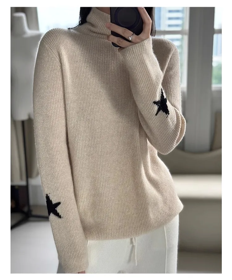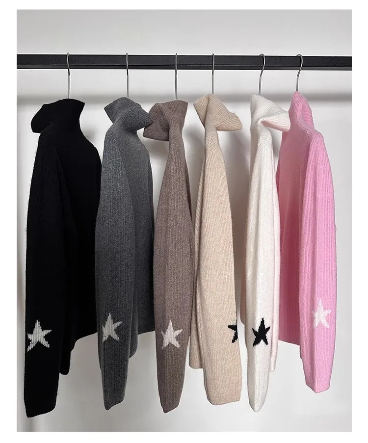 xakxx xakxx-Pure cashmere thick high-necked bottoming shirt female gold ingot needle pile collar knitted cuff star sweater