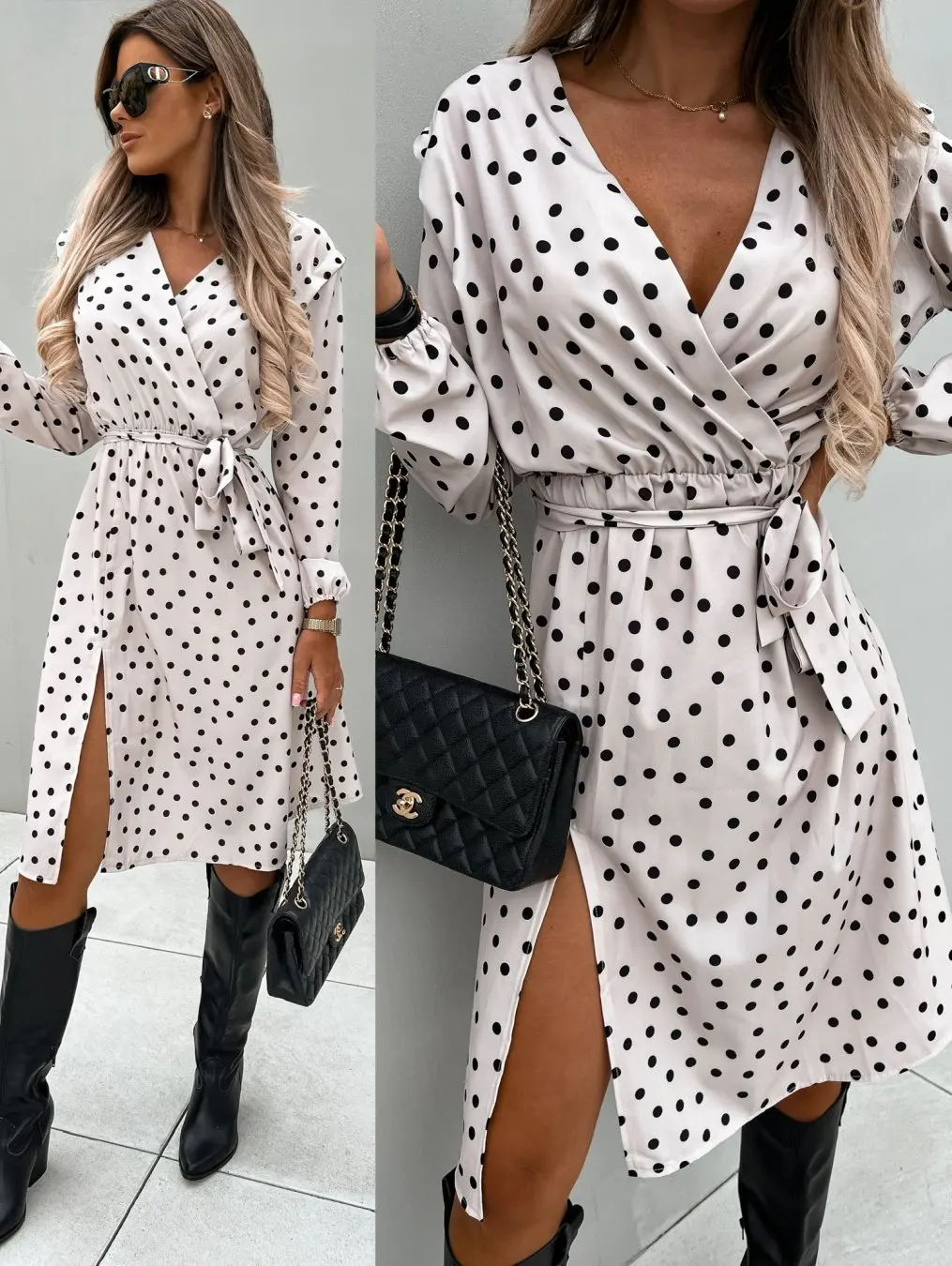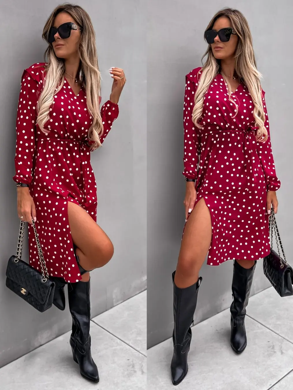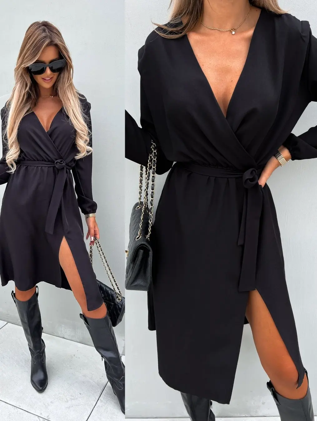 xakxx- Sexy Black Shirt Dress Women One Piece Deep V Neck Long Sleeve Mini Blouse Split Skirt Dresses Autumn