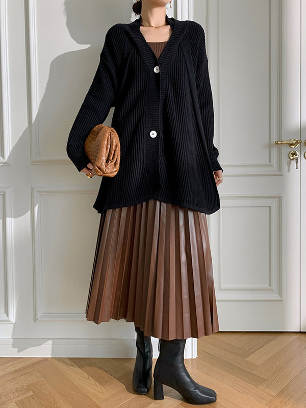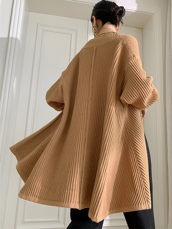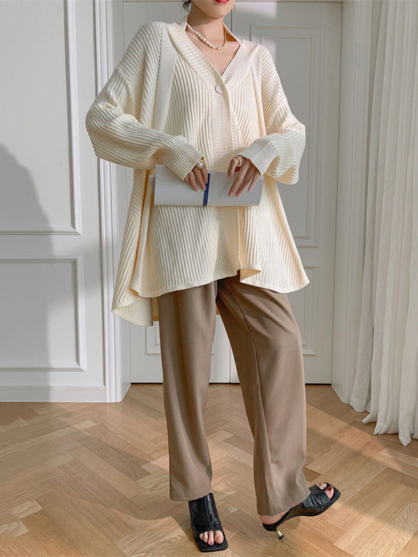 xakxx Stylish A-Line Long Sleeves Loose Solid Color V-Neck Cardigan Tops