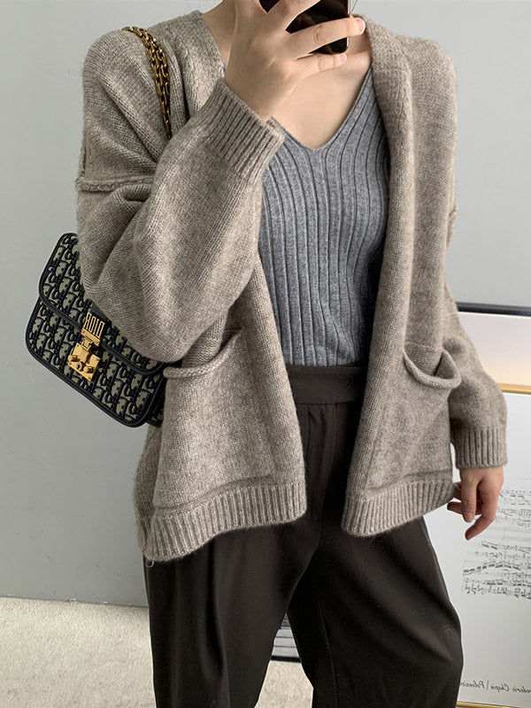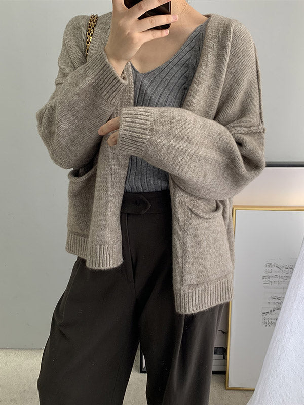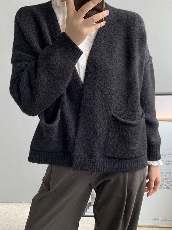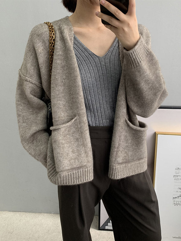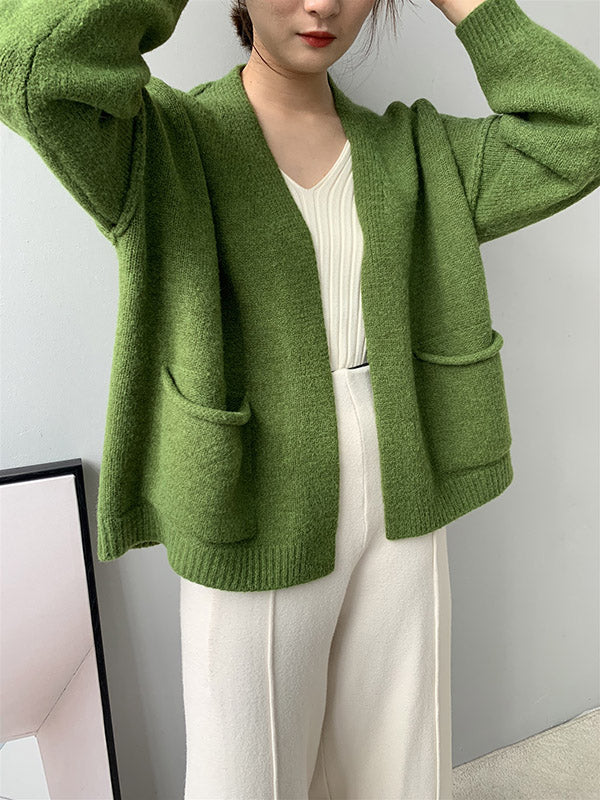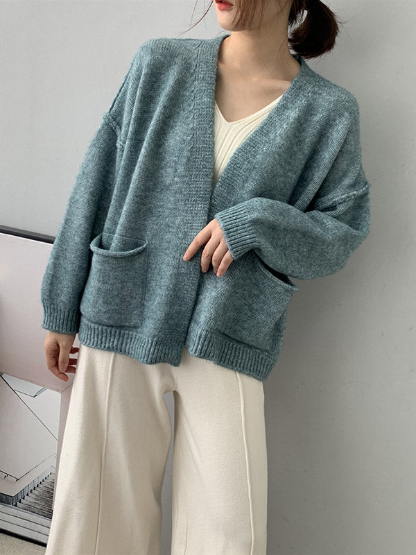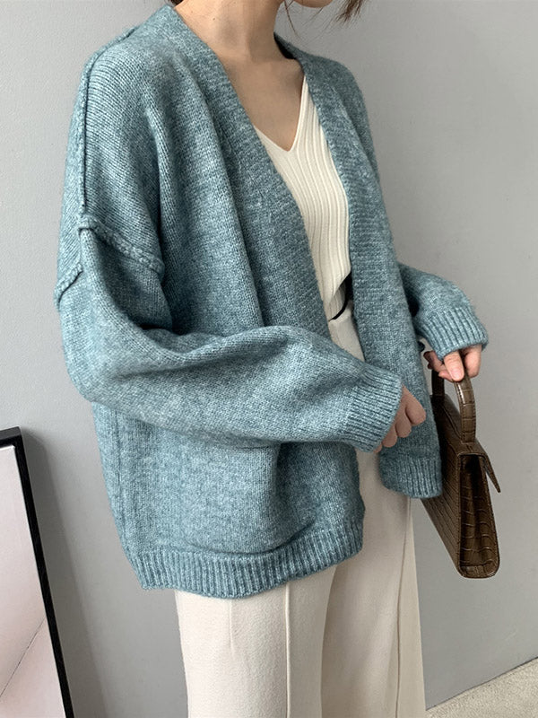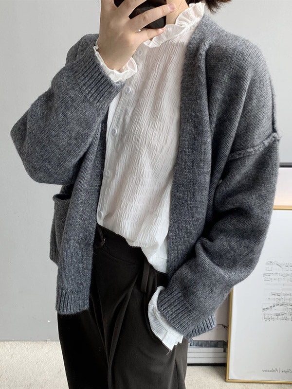 xakxx Urban Solid Color Long Sleeves Knitting Cardigans Outerwear