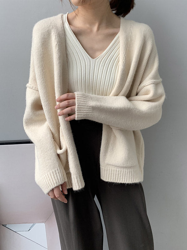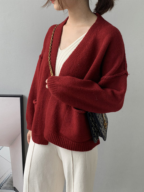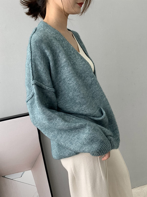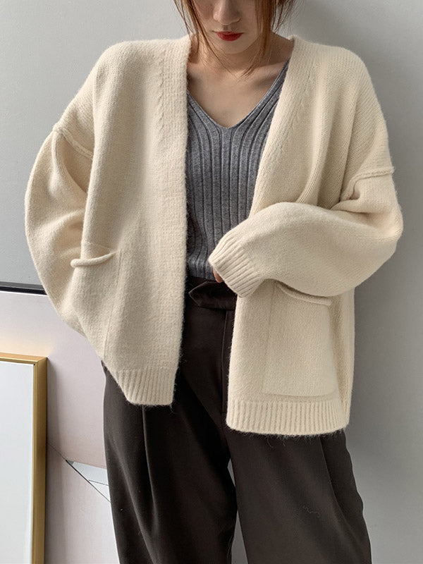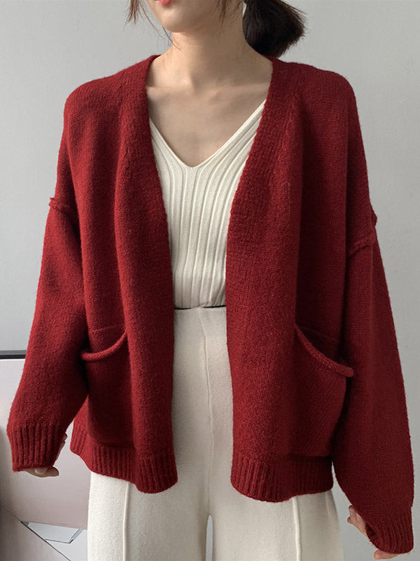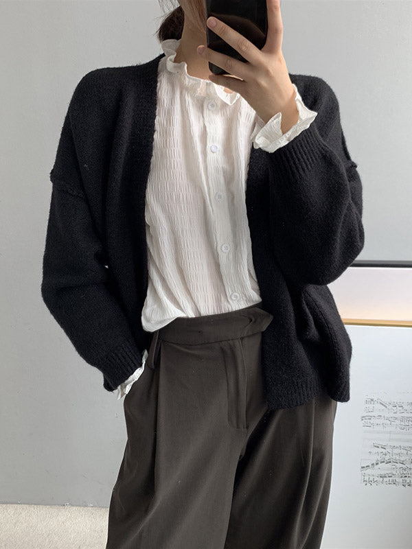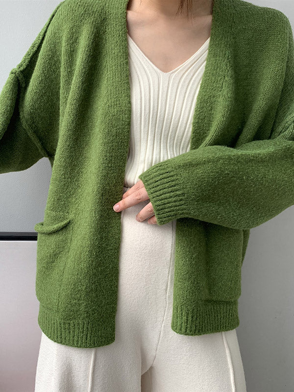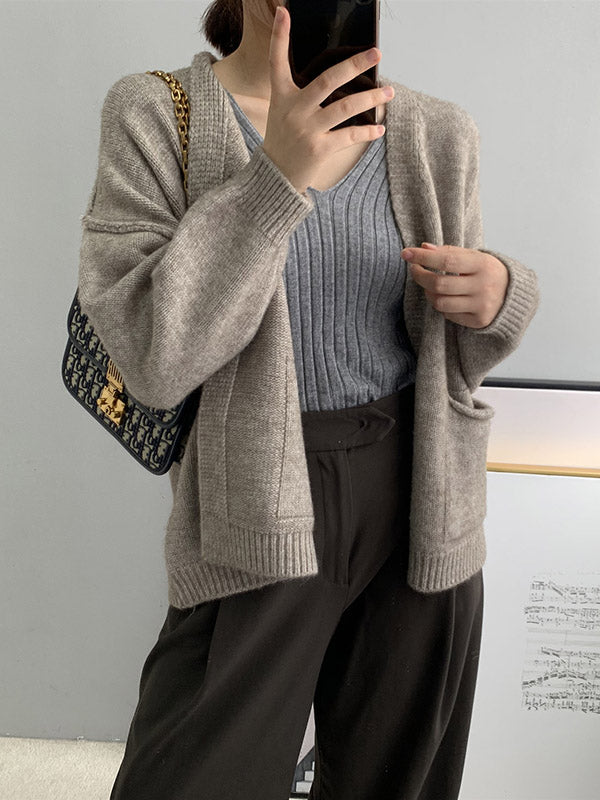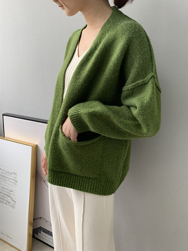 xakxx Urban Solid Color Long Sleeves Knitting Cardigans Outerwear