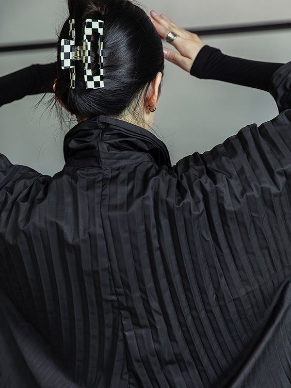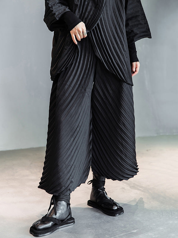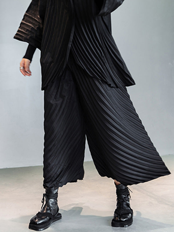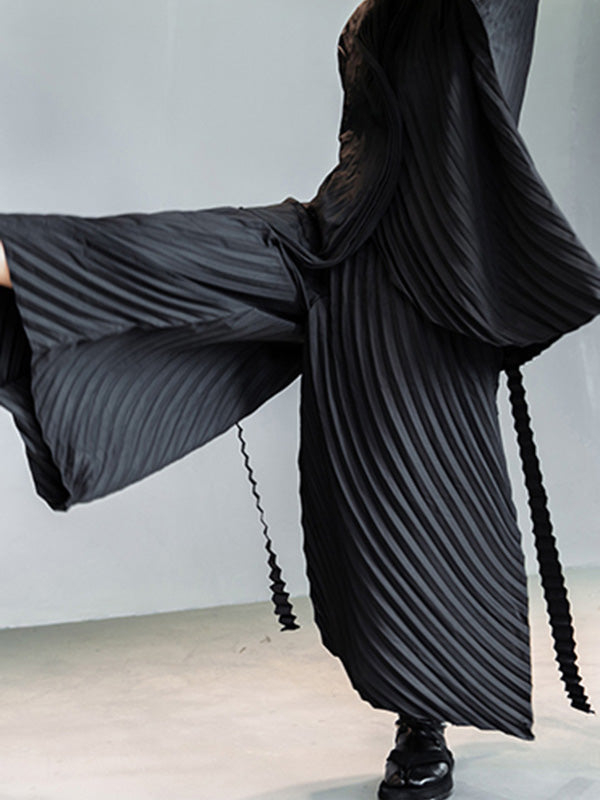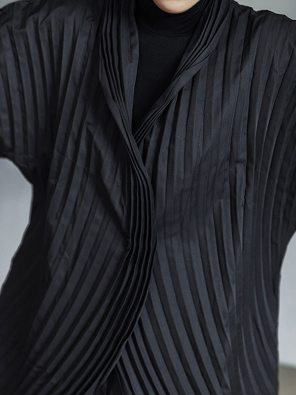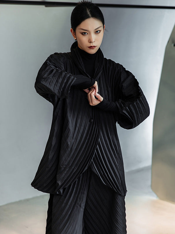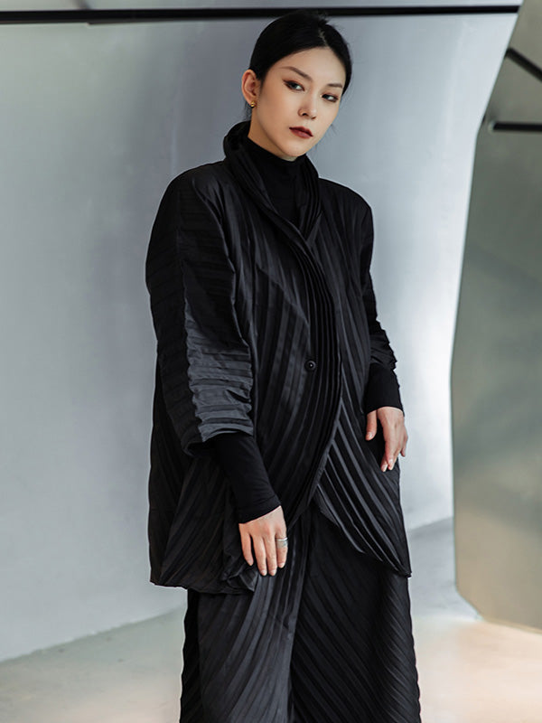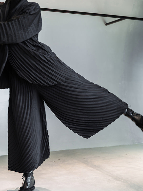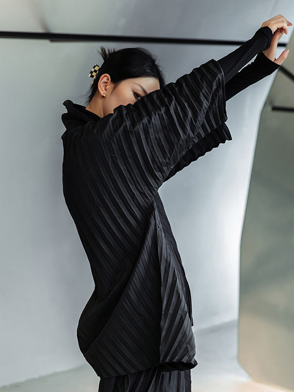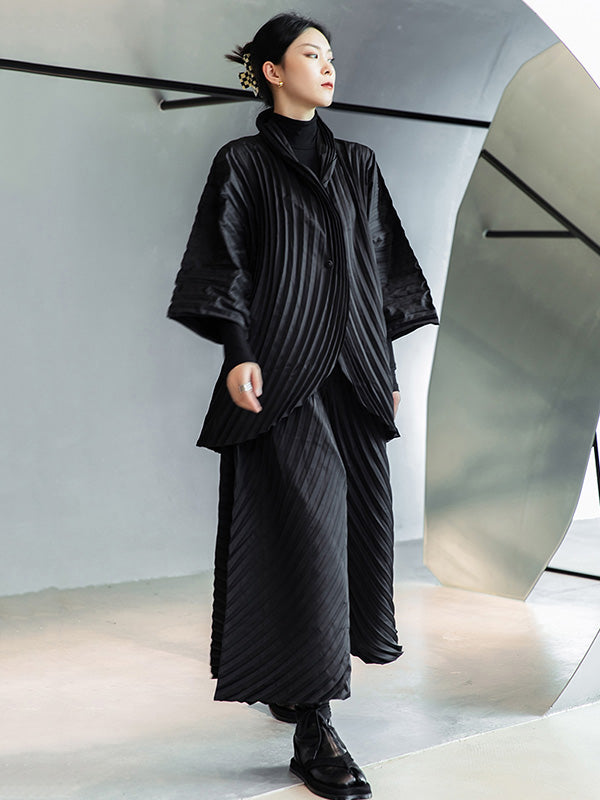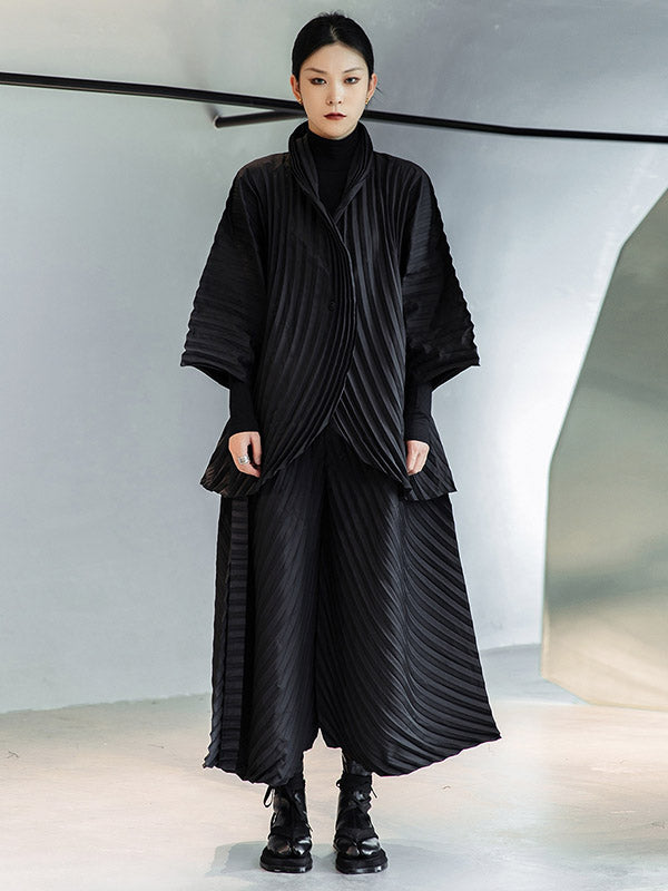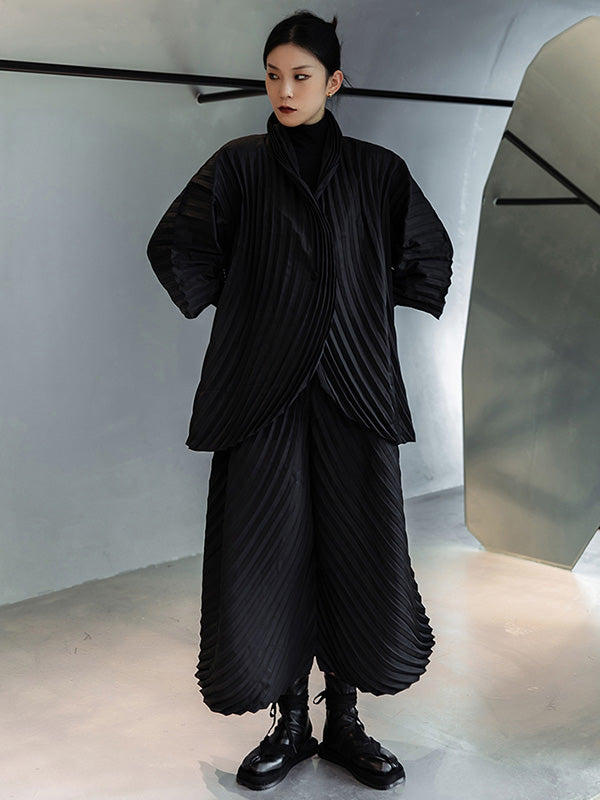 xakxx Urban Solid Color Pleated Outerwear&Pants Two Pieces Set
