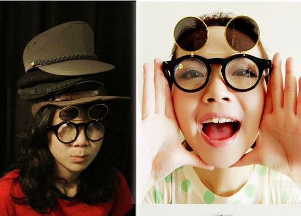 xakxx Women's Mens Retro Style Flip Up Round Steampunk Sunglasses